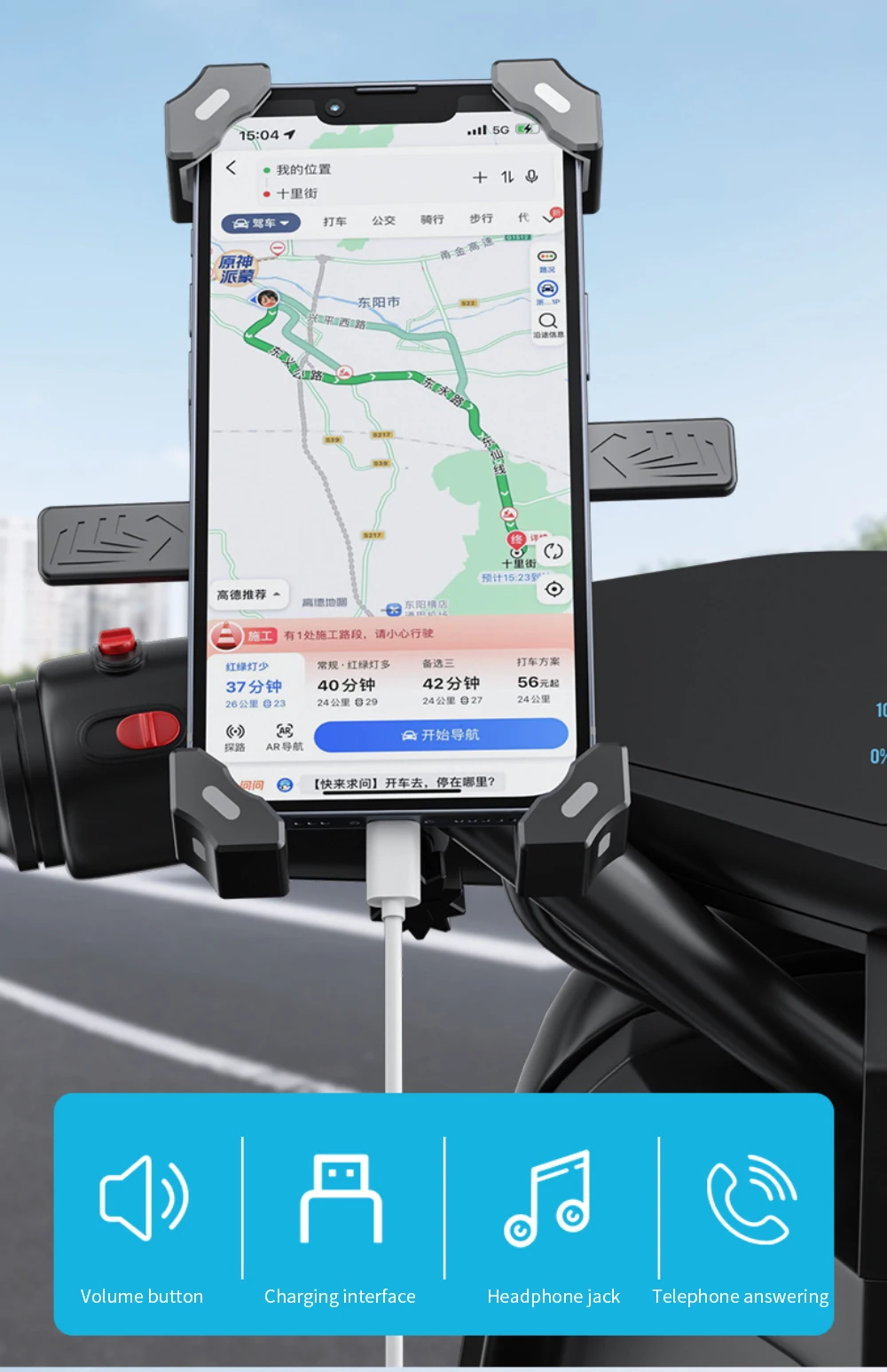 2. El soporte del teléfono móvil está diseñado científicamente, funciona a pantalla completa, no bloquea las teclas y es cómodo de manejar. La interfaz reservada y las posiciones clave pueden escuchar canciones, cargar y recibir llamadas en cualquier momento.