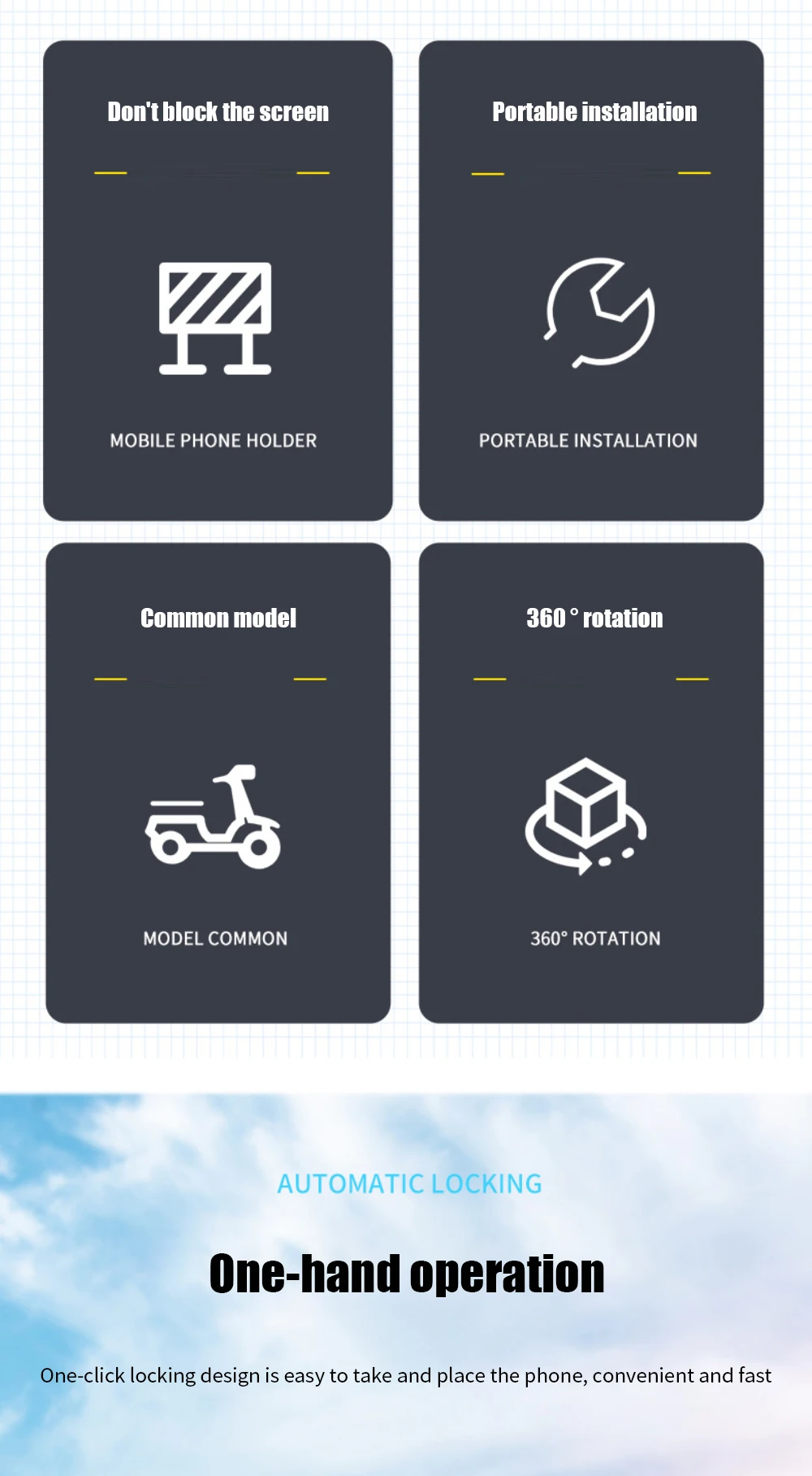 1. Adecuado para soporte de teléfono móvil para bicicleta y para llevar, diseño de bloqueo de un botón, bloqueo automático, silicona a prueba de golpes y cero jitter.