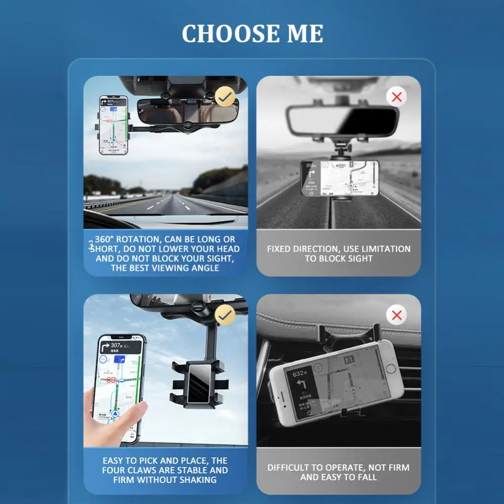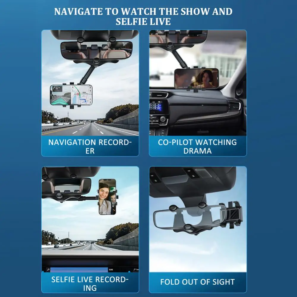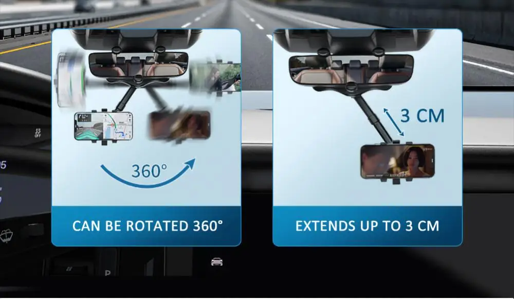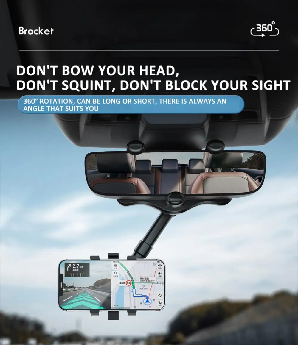 Soporte giratorio para teléfono móvil de coche, soporte para espejo retrovisor, soporte GPS, soporte ajustable para teléfono móvil