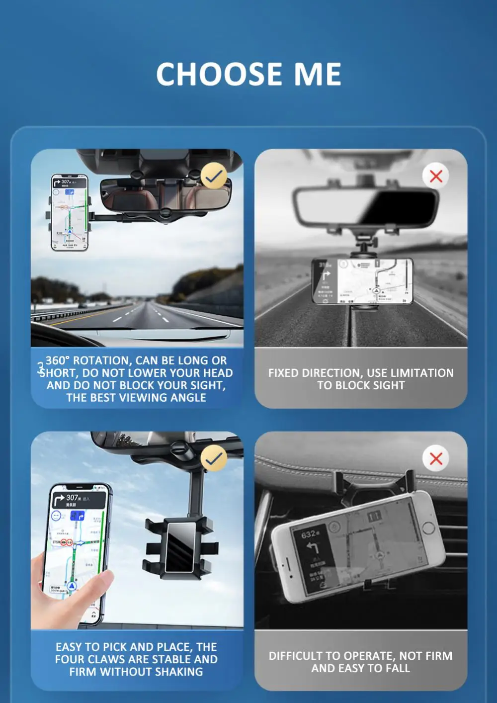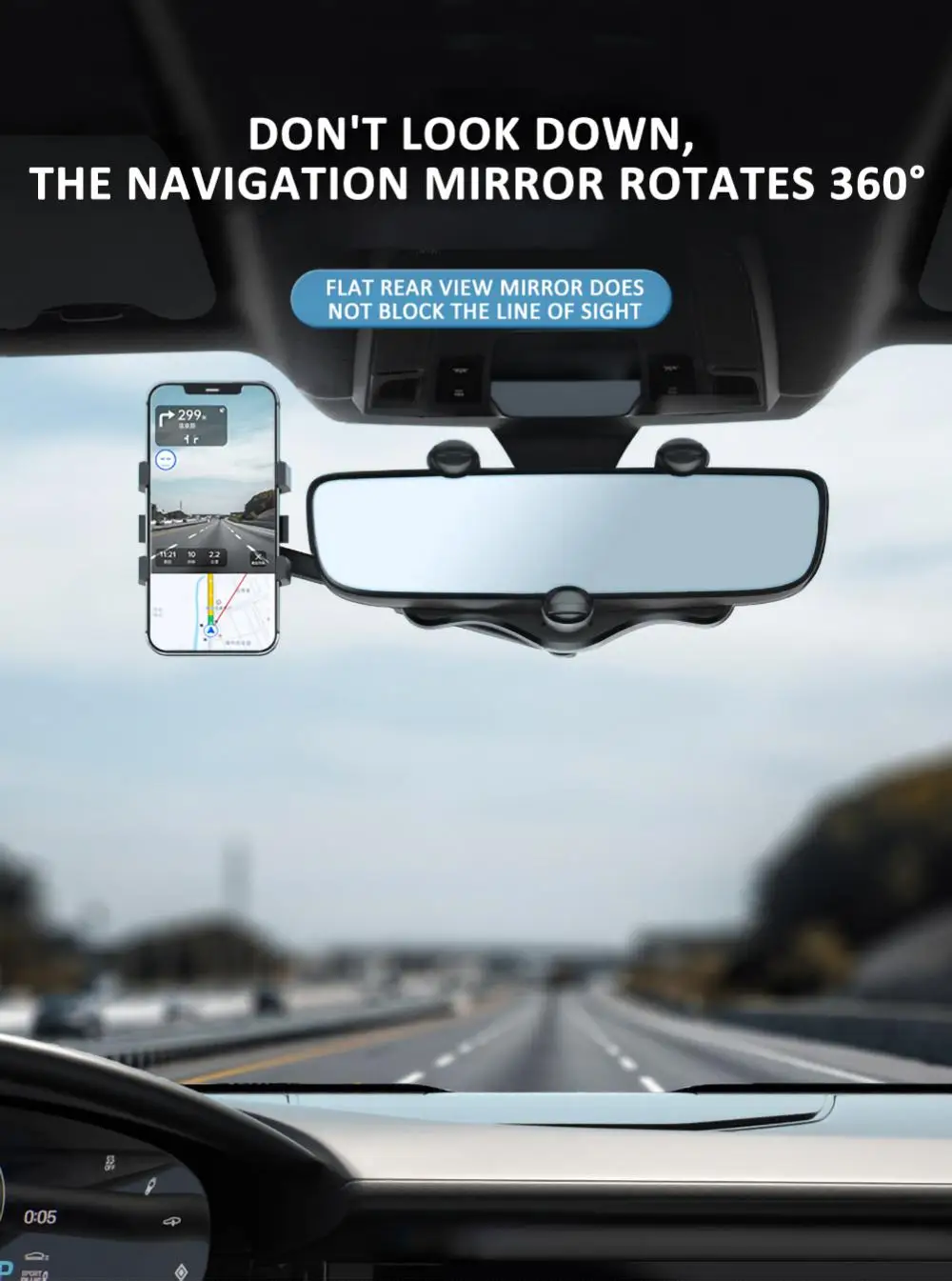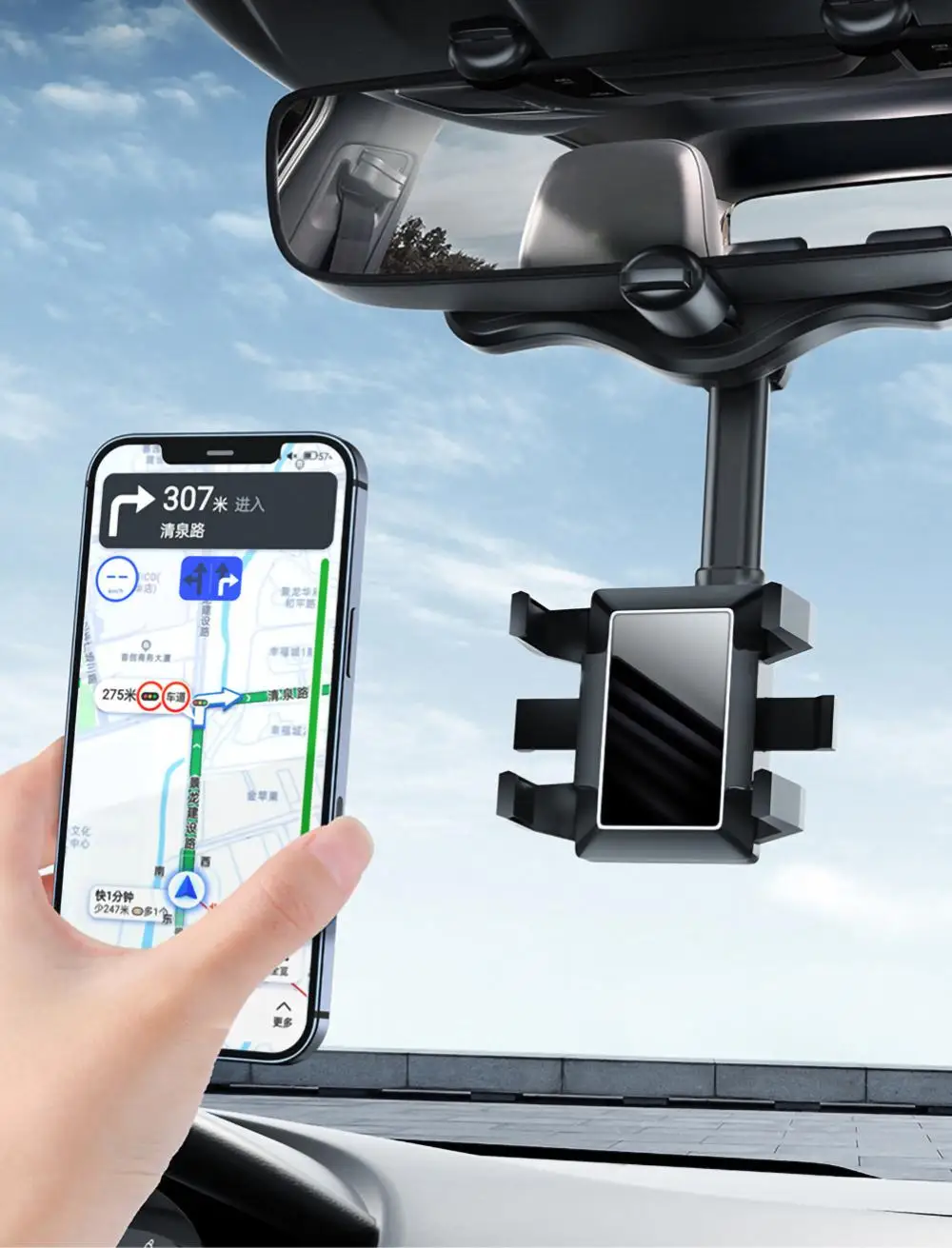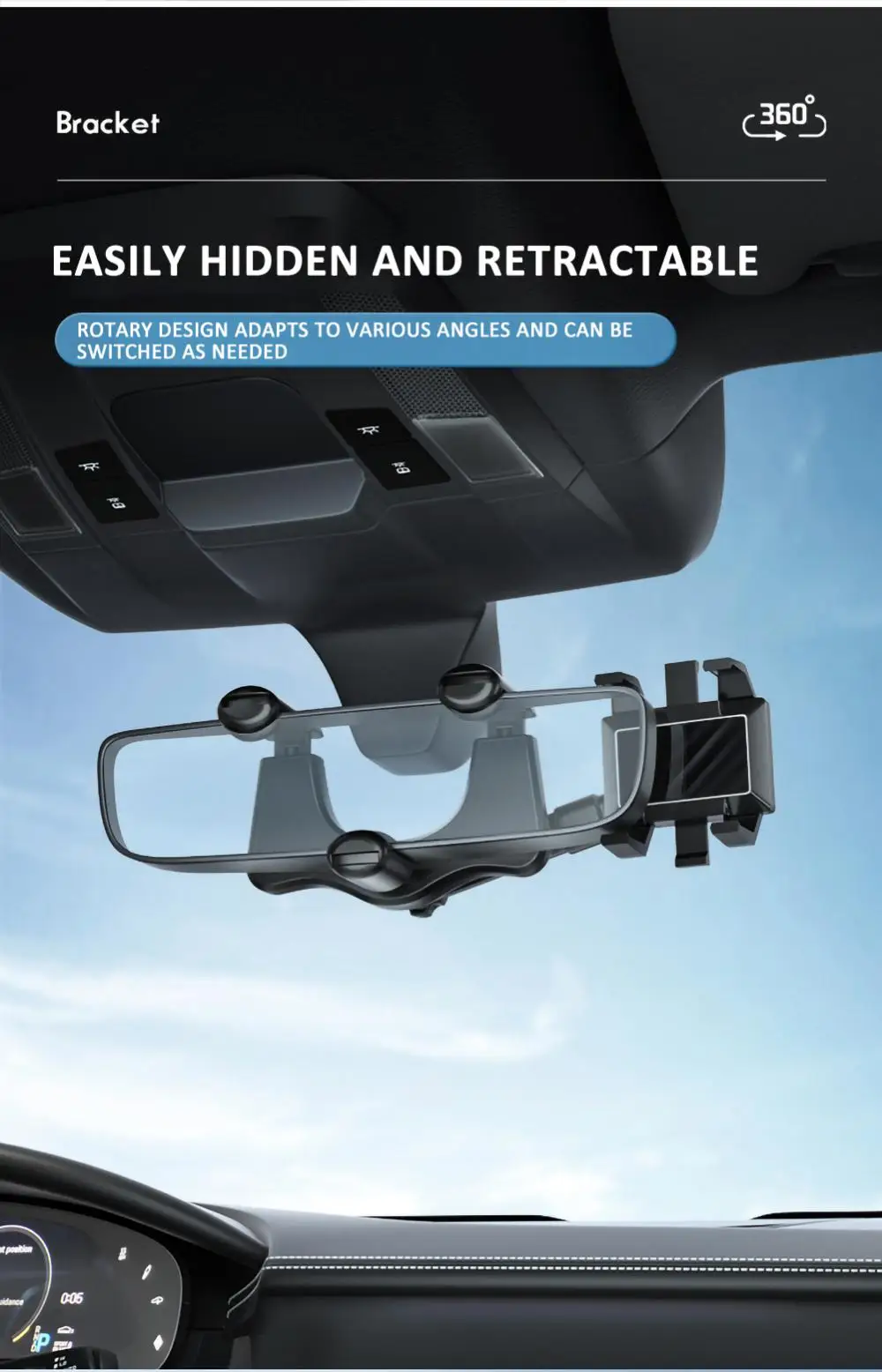 Soporte giratorio para teléfono móvil de coche, soporte para espejo retrovisor, soporte GPS, soporte ajustable para teléfono móvil