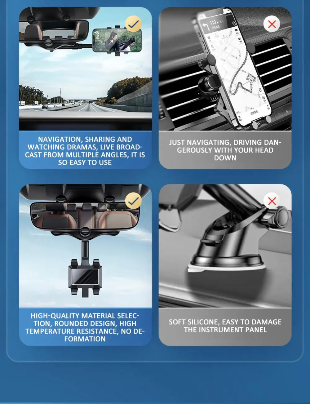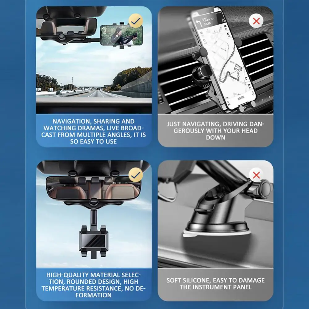 [Características del producto]: colocación del teléfono móvil, navegación segura, compatibilidad con múltiples dispositivos, antideslizante, sin daños en la máquina, sin bloquear la línea de visión, pequeño y portátil, ¡retráctil y giratorio!