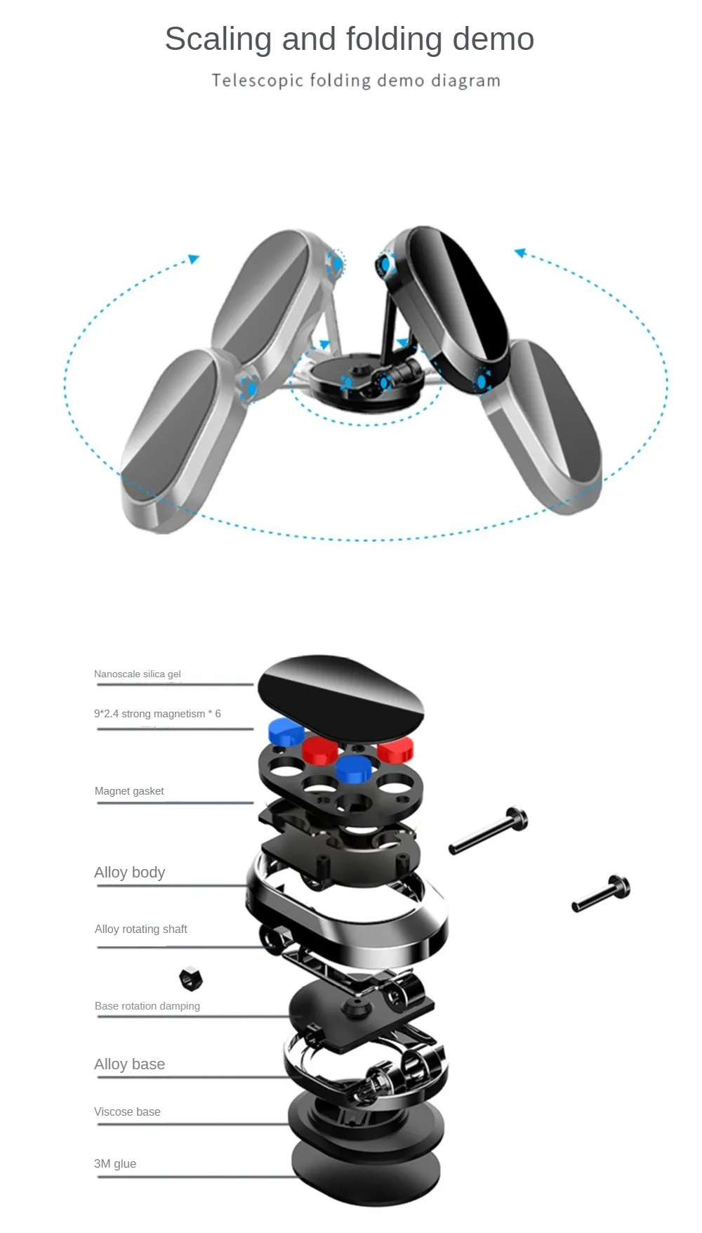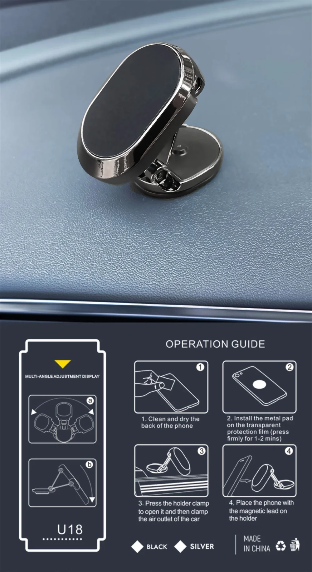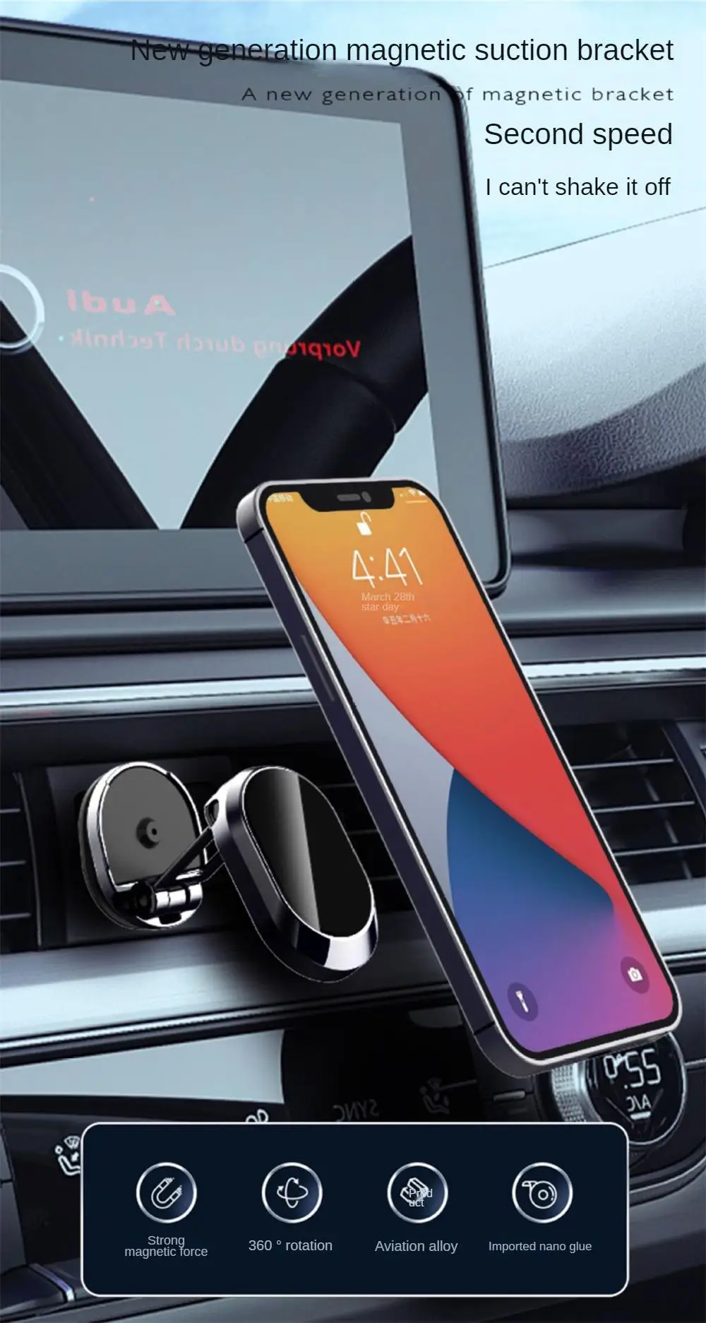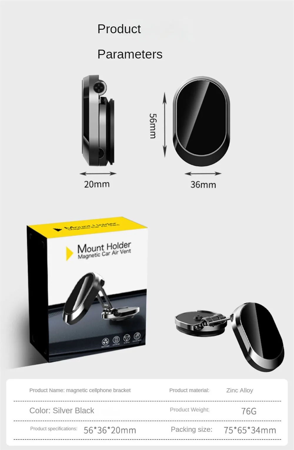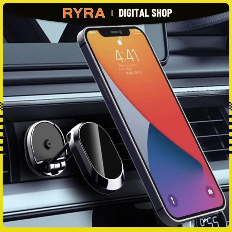 RYRA-Soporte magnético de metal para teléfono de coche, soporte de ventilación plegable para teléfono inteligente, GPS, iPhone, Xiaomi, Huawei, Samsung