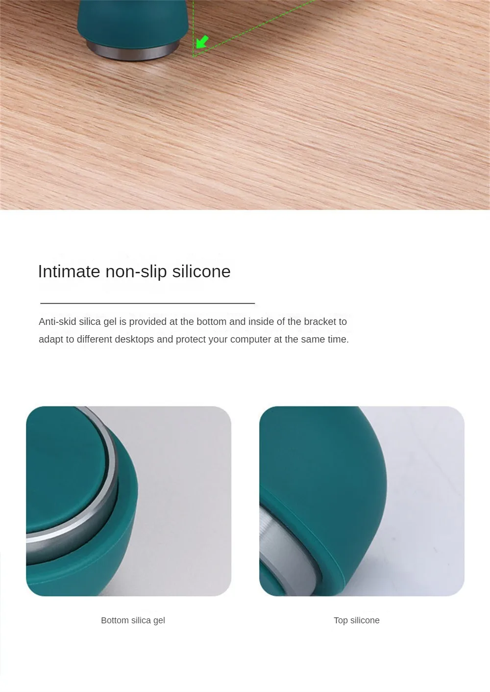 3. La parte inferior y el interior del soporte están equipados con silicona antideslizante, que puede adaptarse a diferentes escritorios y proteger su ordenador al mismo tiempo