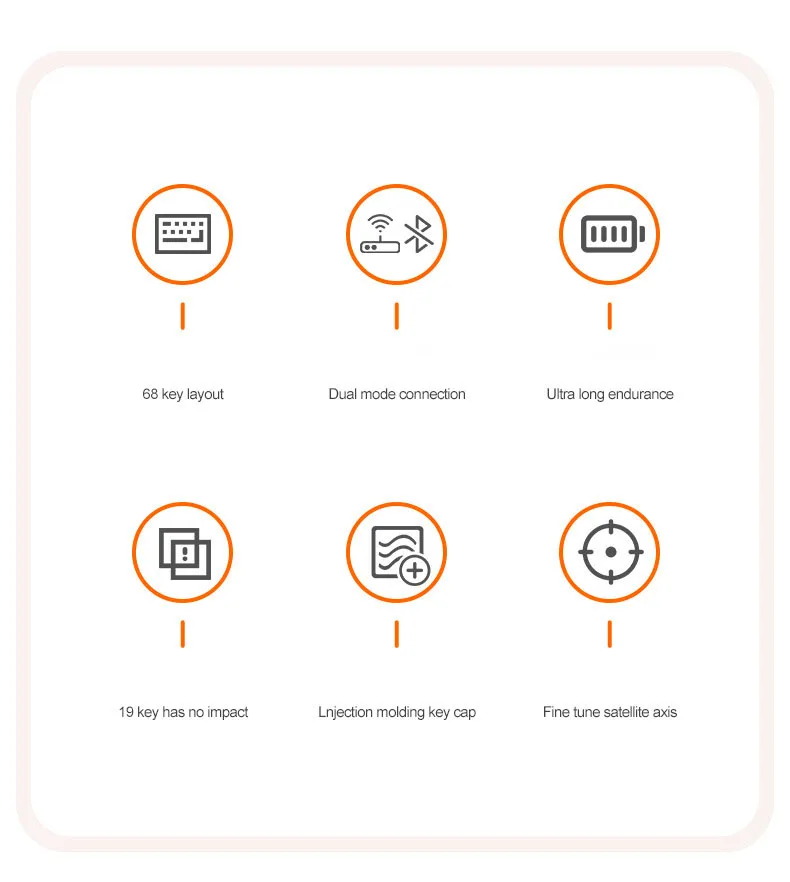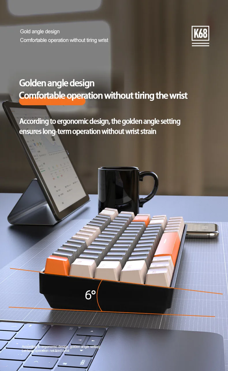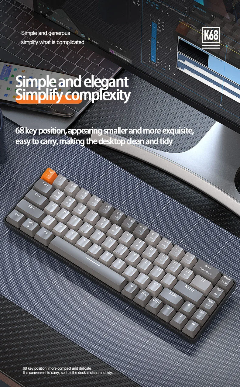 68 posiciones de tecla, parece más compacto y exquisito. Cómodo de llevar, manteniendo el escritorio limpio y ordenado