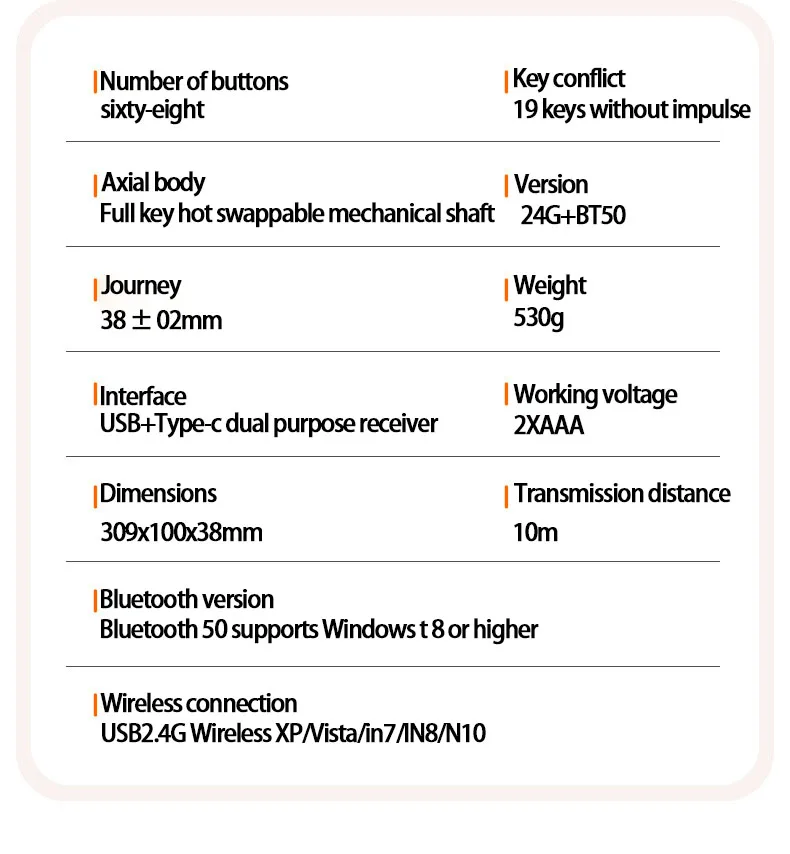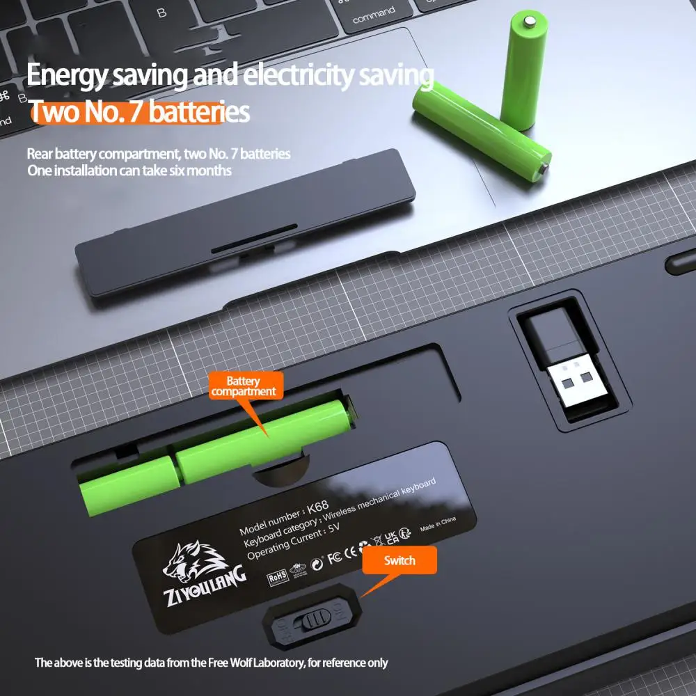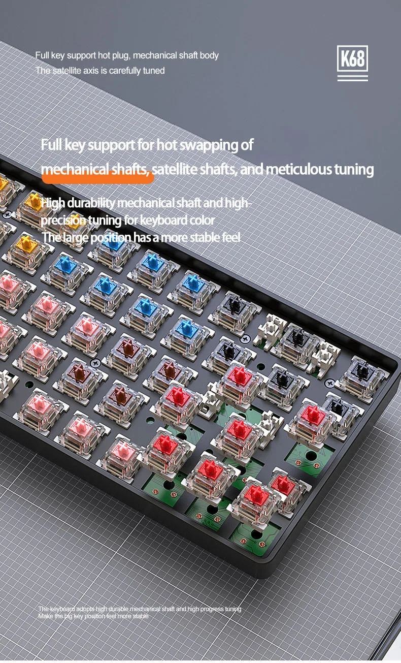 RYRA K68 2,4G/BT5.0 Teclado mecánico inalámbrico para juegos 68 teclas Teclado mecánico para juegos de intercambio en caliente Teclas PBT Teclados para jugadores
