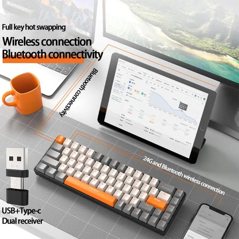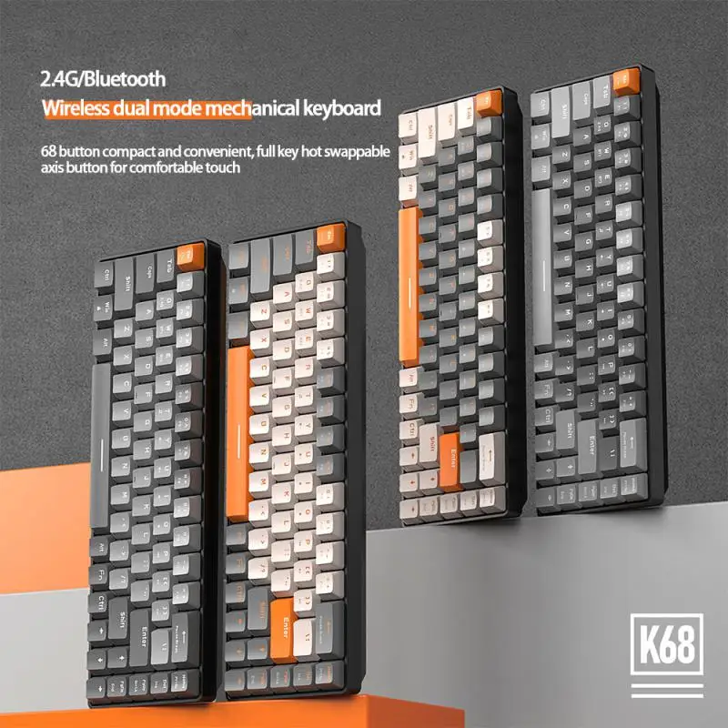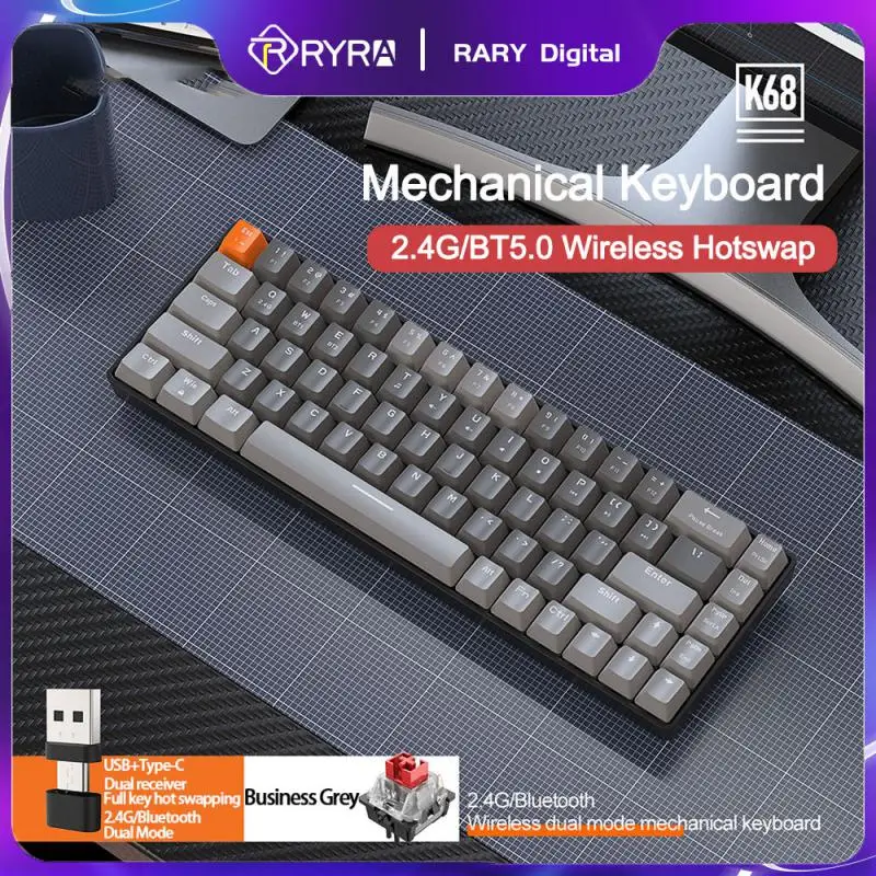 Comprar RYRA-Teclado mecánico inalámbrico K68 para videojuegos, dispositivo de intercambio en caliente, 2,4G/BT5.0, 68 teclas, PBT