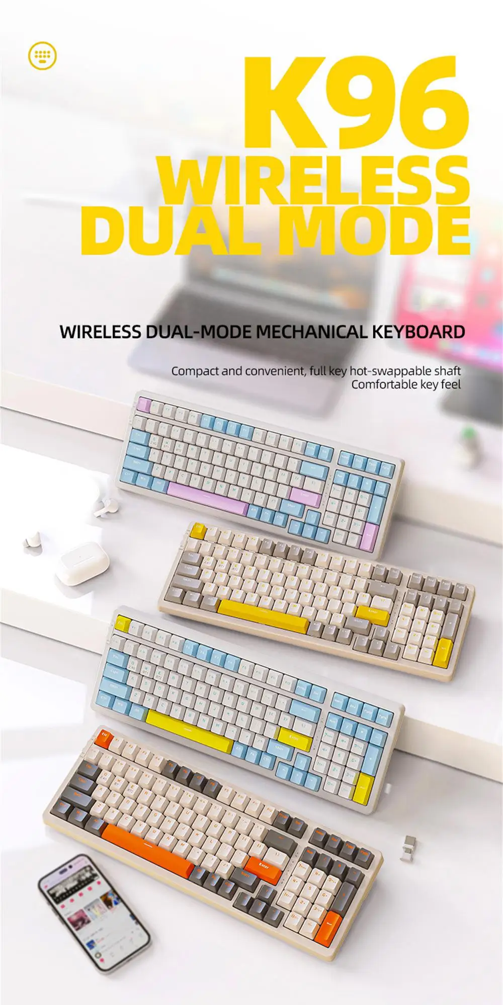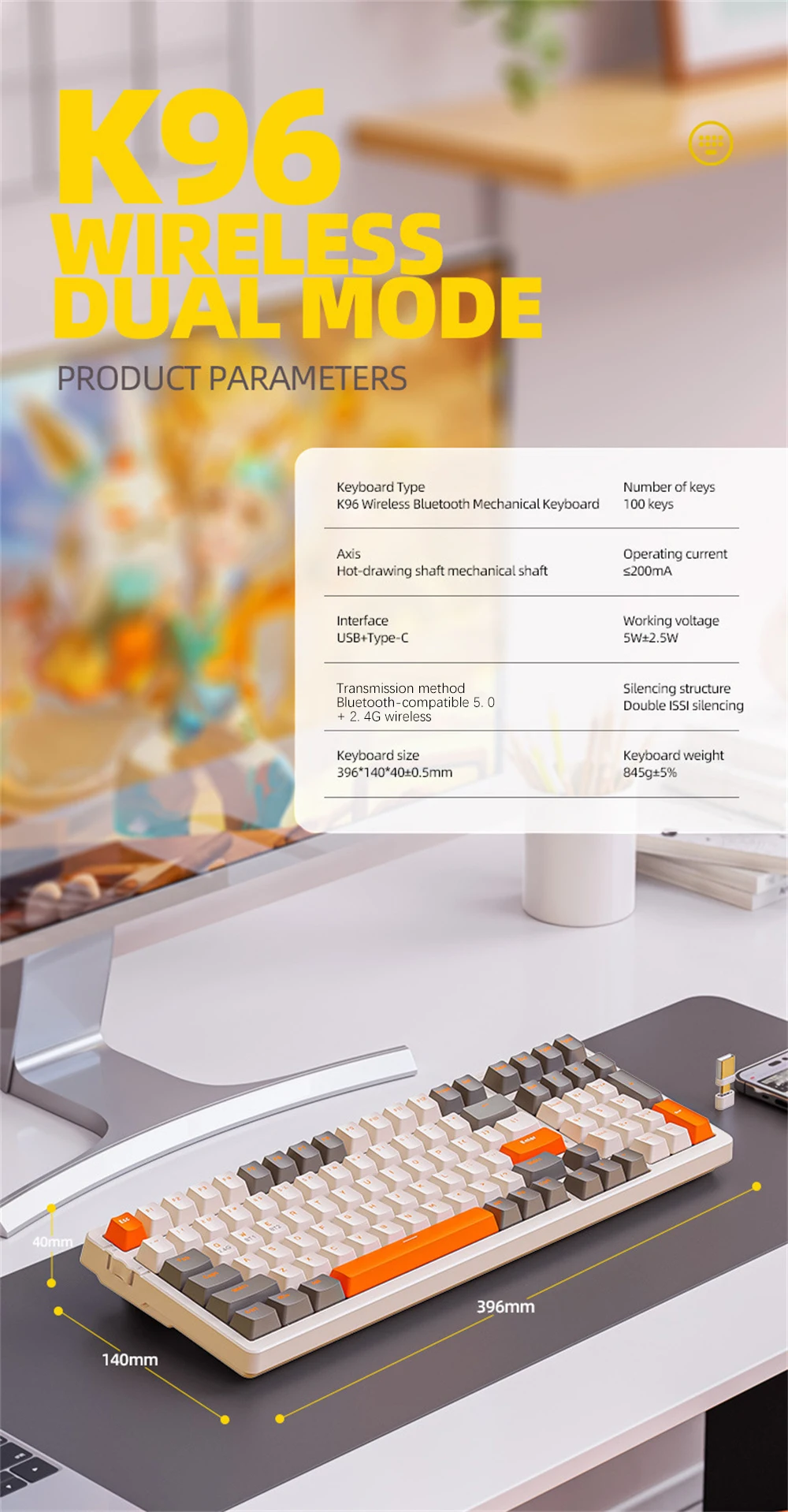 RYRA K96 2,4G/BT5.0 Teclado mecánico inalámbrico para juegos 100 Key Hotswap Red Switch Gaming Keyboard ABS Keycap Keyboard para Gamer
