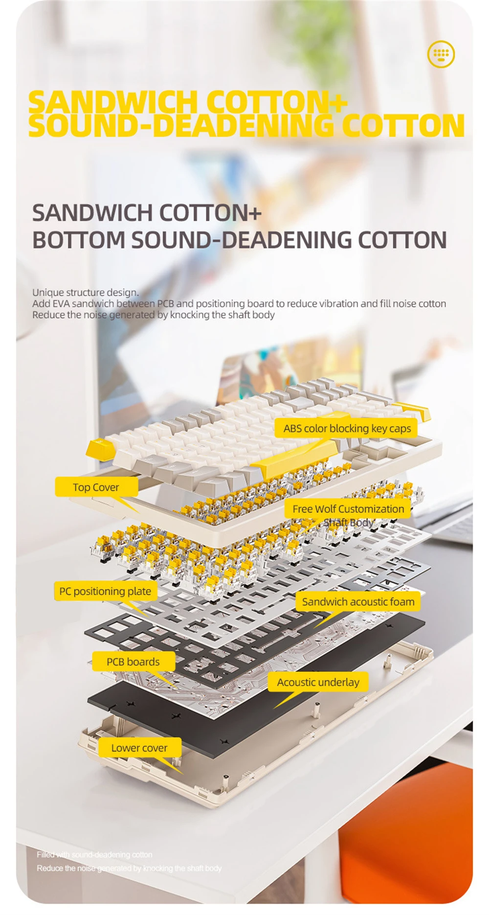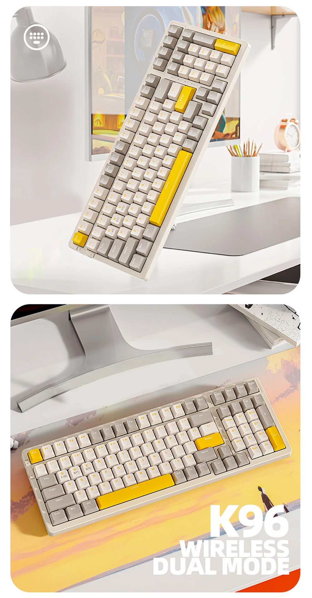 Comprar RYRA-Teclado mecánico inalámbrico para videojuegos, dispositivo con 2,4 teclas, Hotswap, interruptor rojo, ABS, K96, 100G/BT5.0