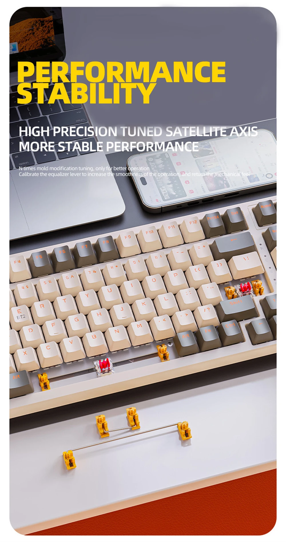 El teclado utiliza un eje mecánico altamente duradero y una afinación de alta precisión, lo que hace que la posición de las teclas grandes se sienta más estable.