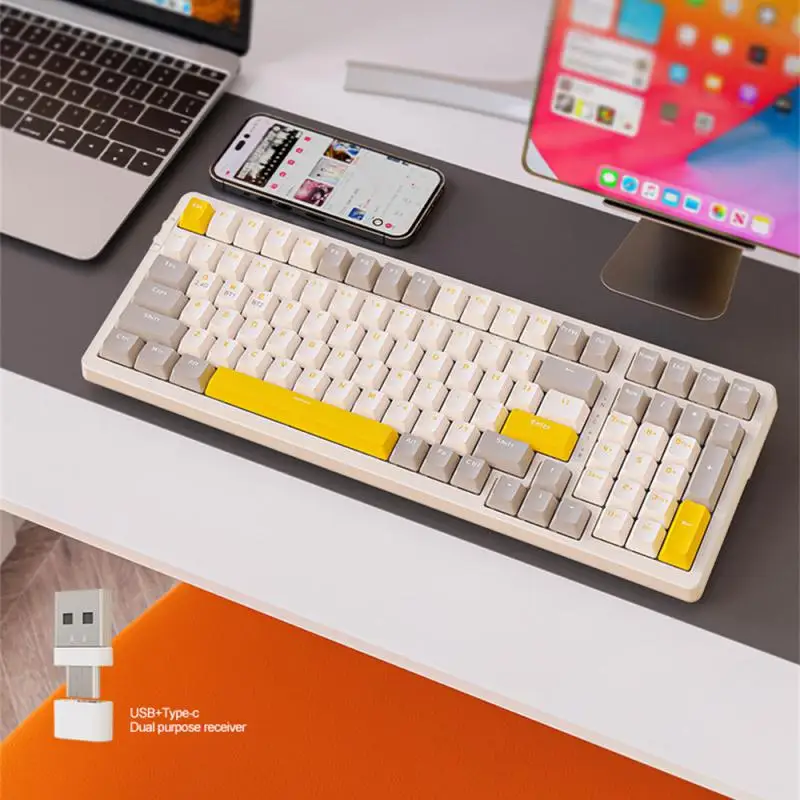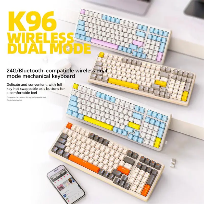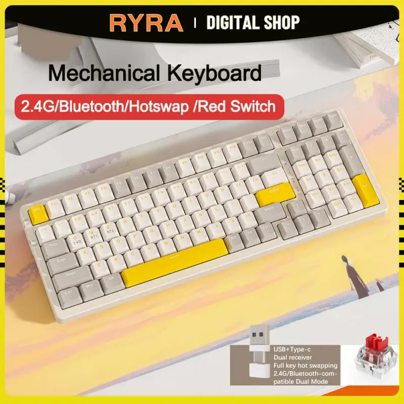 RYRA K96 2,4G/BT5.0 Teclado mecánico inalámbrico para juegos 100 Key Hotswap Red Switch Gaming Keyboard ABS Keycap Keyboard para Gamer