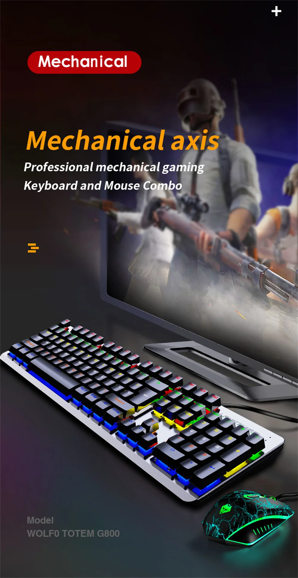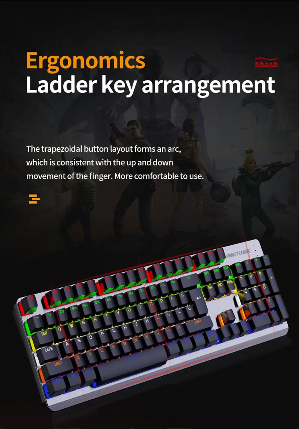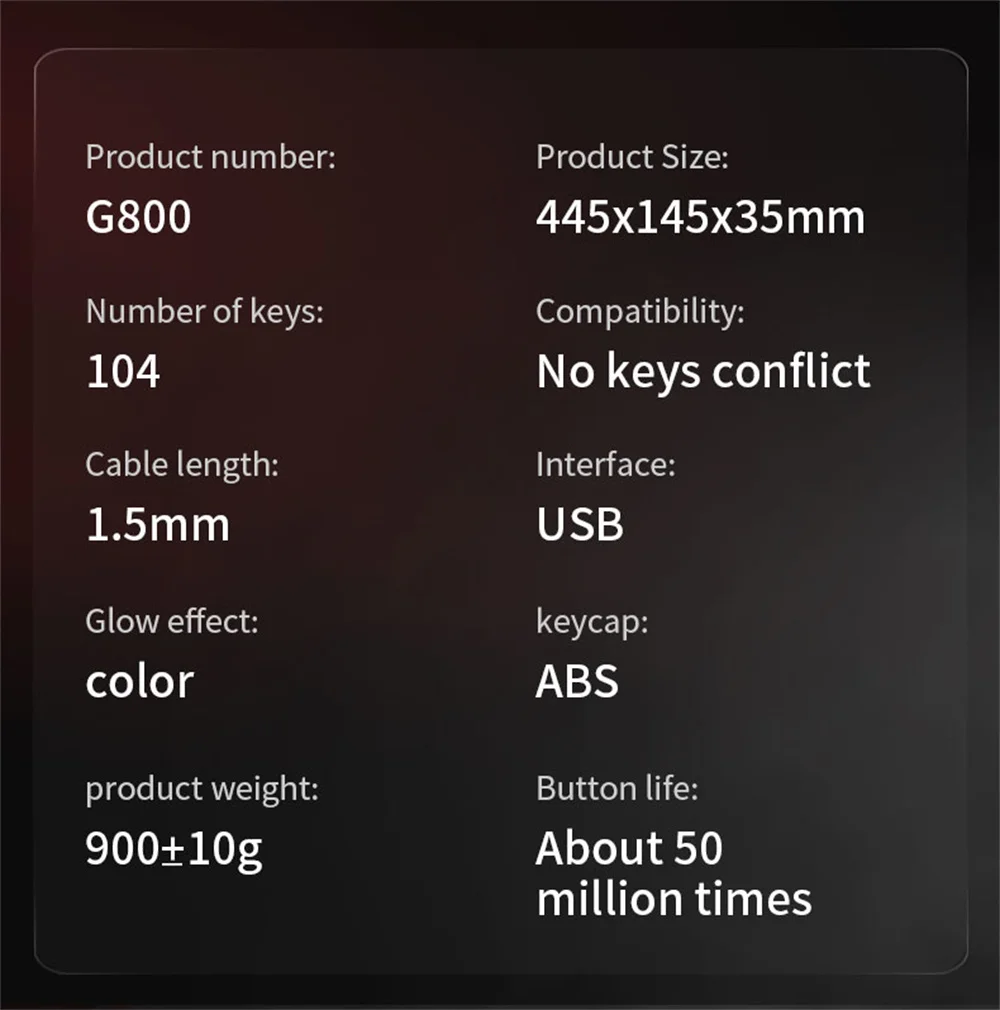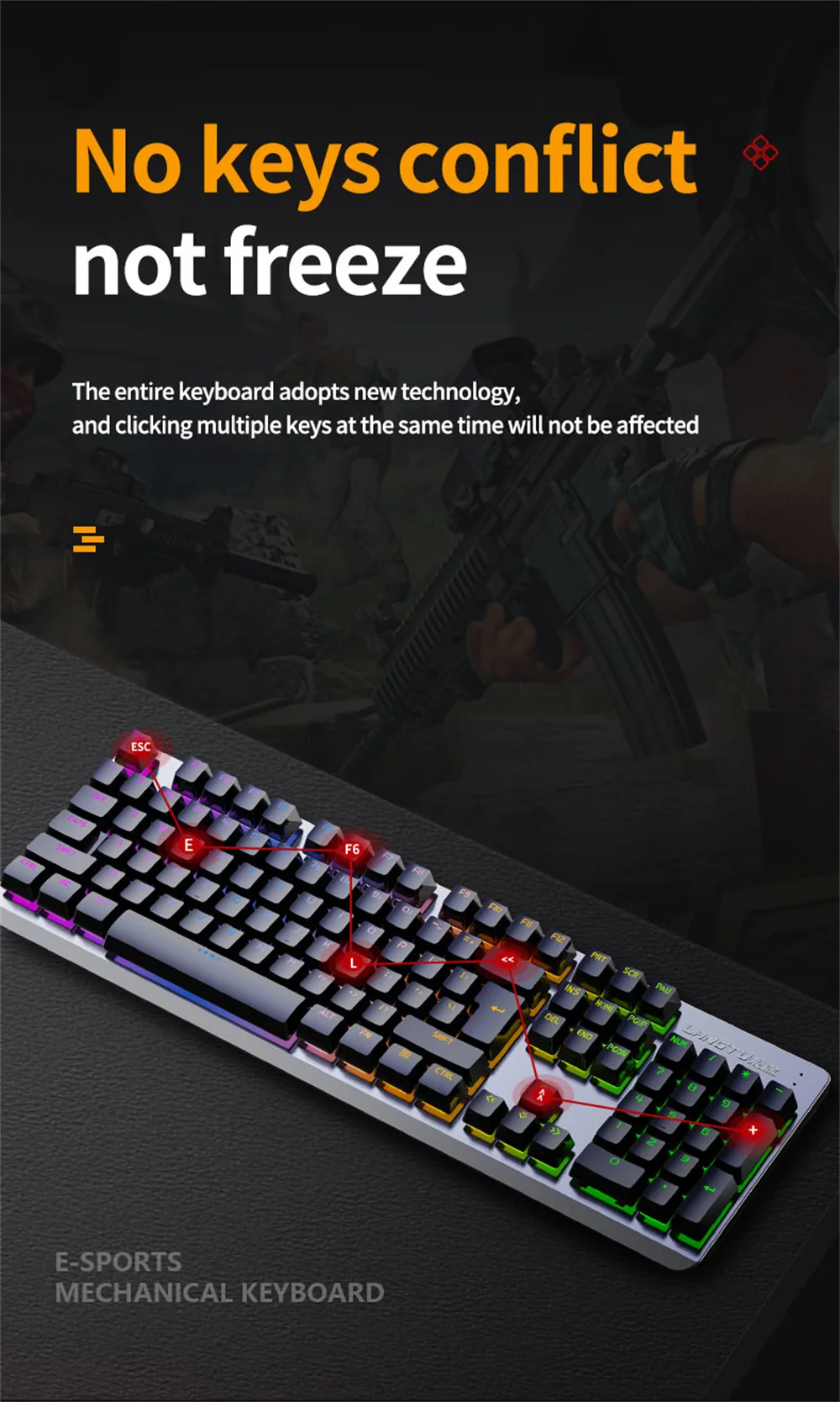 Comprar RYRA-Teclado mecánico para juegos G800 LED USB, con cable, interruptor de 104 teclas, para PC, portátil, tapa desmontable