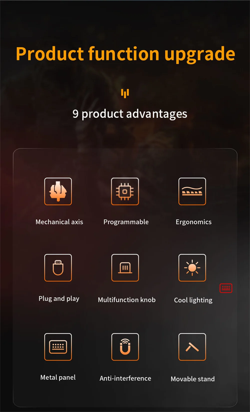 2. Puede realizar más de 30 tipos de luces de fondo geniales con un cambio de tecla y ajustar el volumen al mismo tiempo.