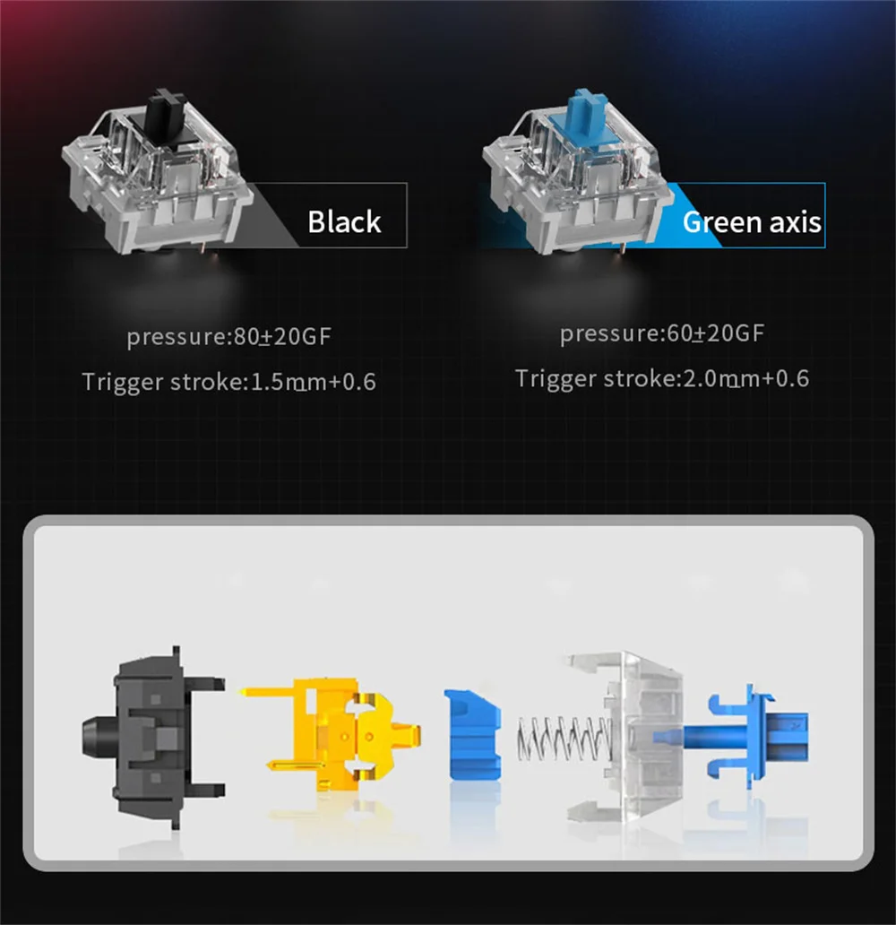 31.000 veces de vida de percusión, la percusión va acompañada de una retroalimentación auditiva nítida y una sensación de párrafo táctil, la sensación mecánica está llena.