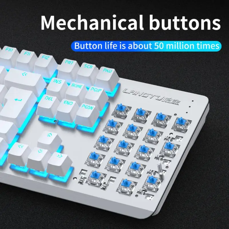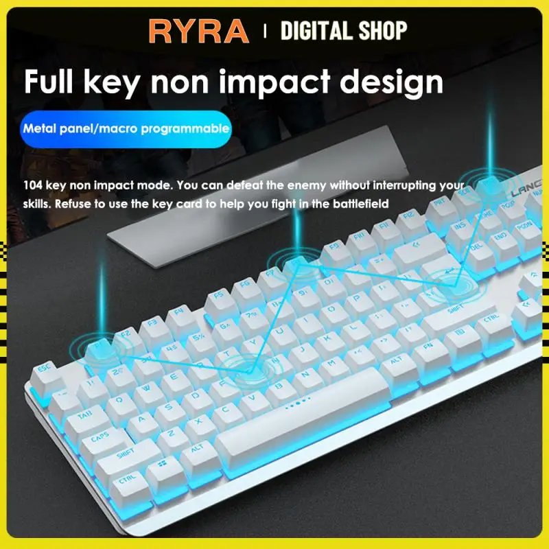 Comprar RYRA-Teclado mecánico para juegos G800 LED USB, con cable, interruptor de 104 teclas, para PC, portátil, tapa desmontable