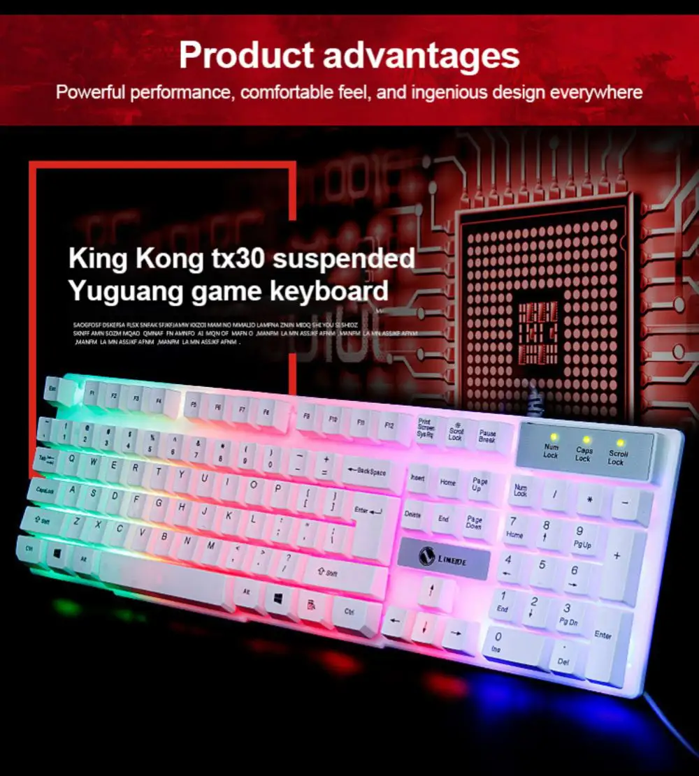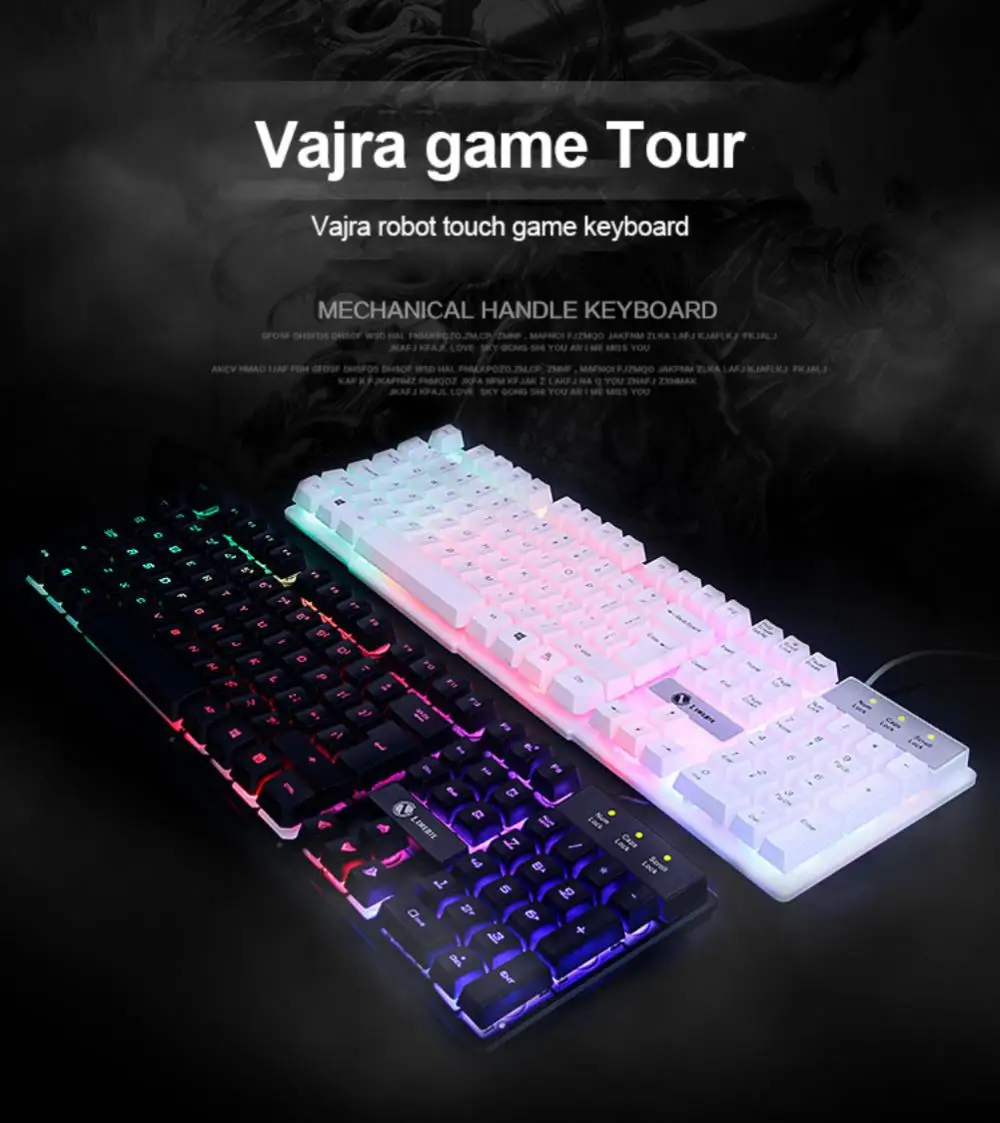 Comprar RYRA-teclado de membrana para juegos, teclado electrónico con cable de 104 teclas, retroiluminado con LED, resistente al agua, para ordenador portátil y Gamer