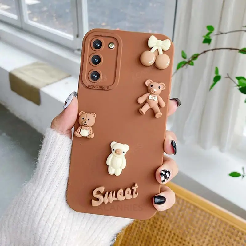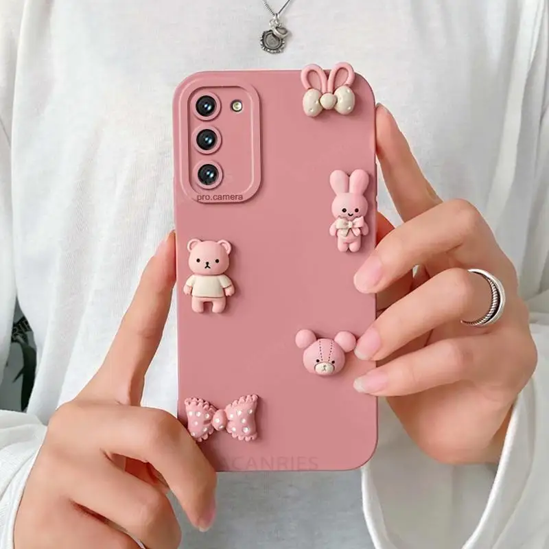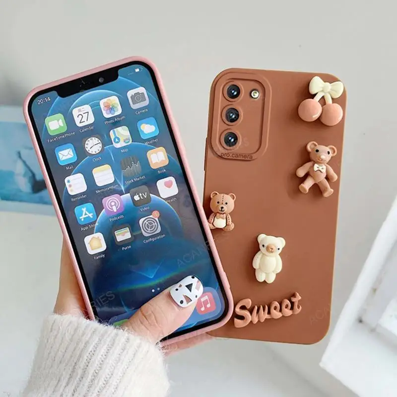S 21 22 23 24 20 Cute 3D Bears Silicone Case For Samsung Galaxy S21 S20 S23 Fe S24 S22 Ultra Plus Cartoon Back Cover S23fe S21fe