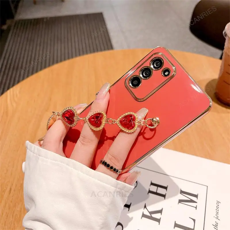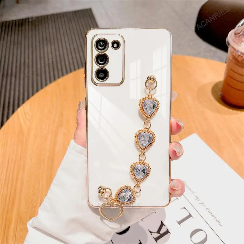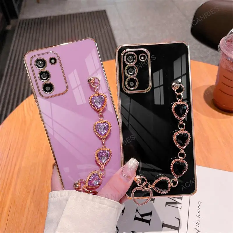 Comprar S 21 22 23 funda de pulsera de cadena de lujo para Samsung Galaxy S20 Fe S21 S22 S23 Plus funda de muñeca de silicona Ultra chapada nota 20