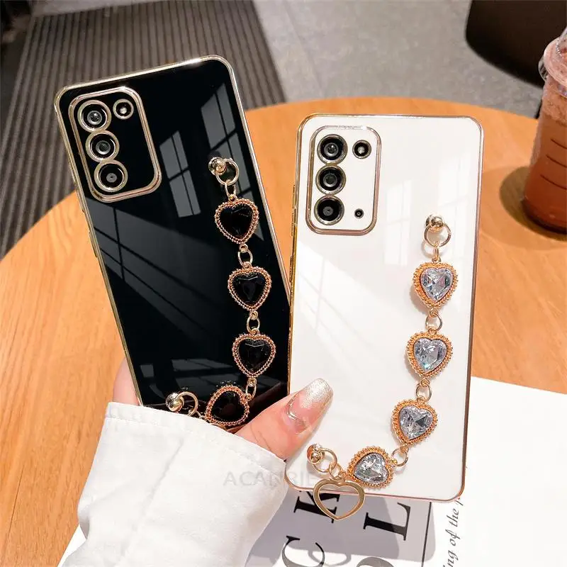 Comprar S 21 22 23 funda de pulsera de cadena de lujo para Samsung Galaxy S20 Fe S21 S22 S23 Plus funda de muñeca de silicona Ultra chapada nota 20