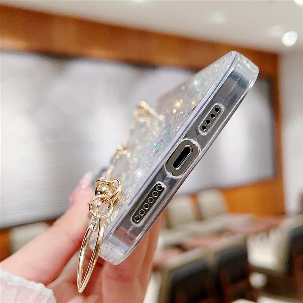 Comprar S 21 22 23 pulsera de mariposa funda de teléfono con purpurina para Samsung Galaxy S24 S23 S22 S21 S20 FE Plus Ultra Note 20 funda suave brillante