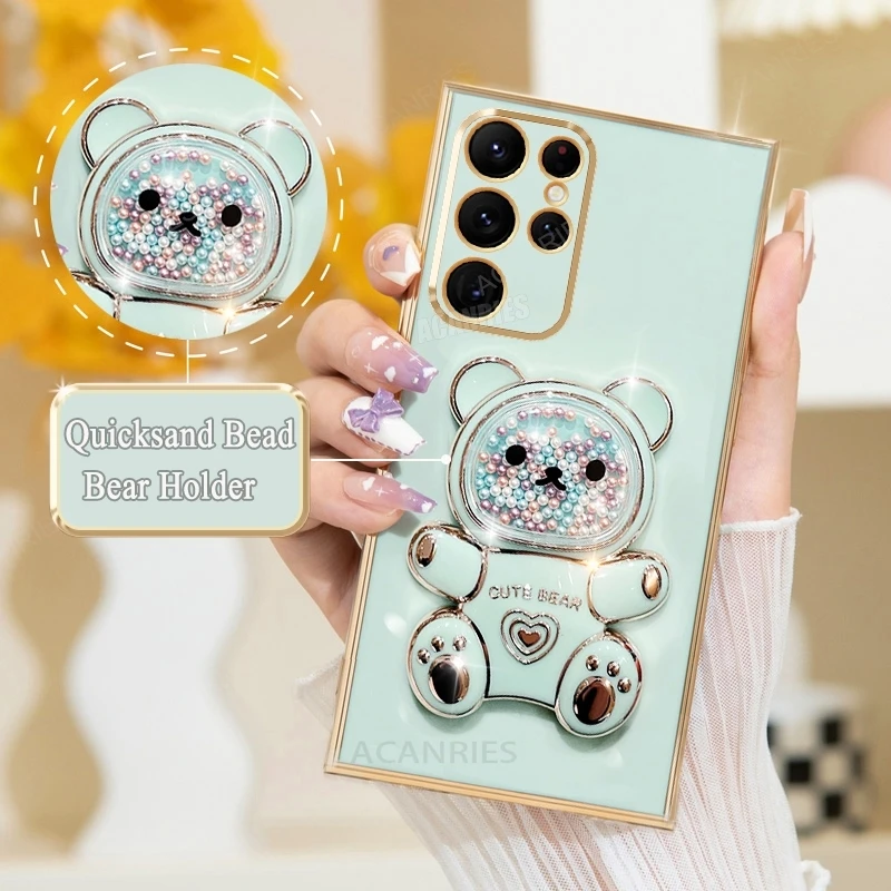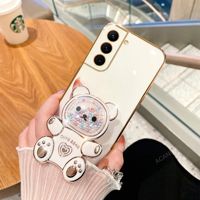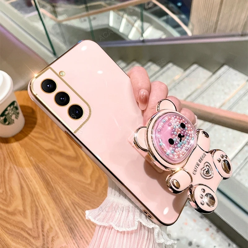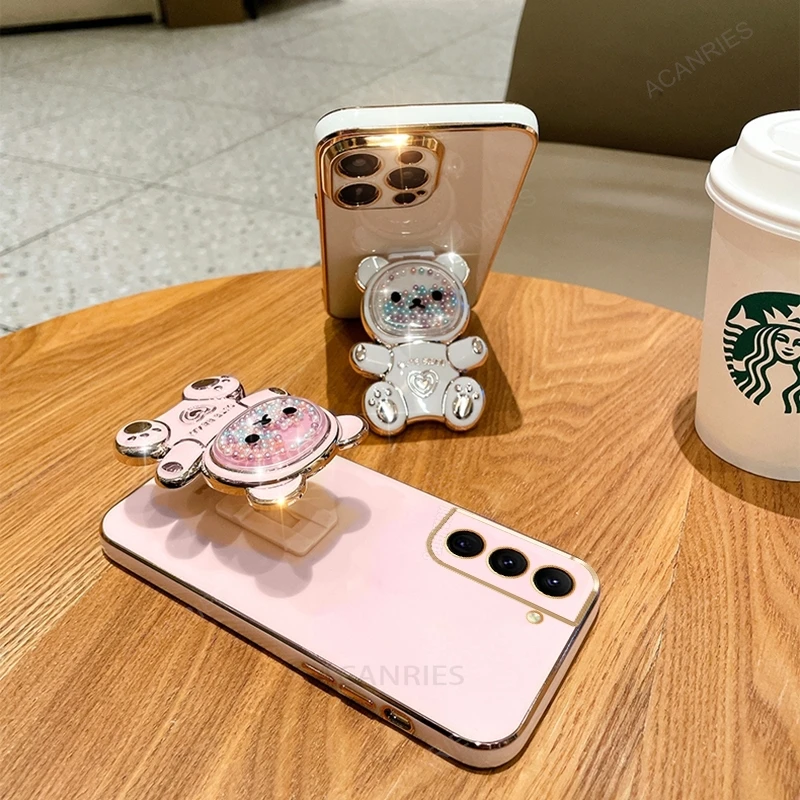 S 24 22 23 25 funda chapada con soporte de oso de arenas movedizas para Samsung Galaxy S21 S20 S22 S23 S24 Fe S25 Plus funda de soporte de silicona Ultra