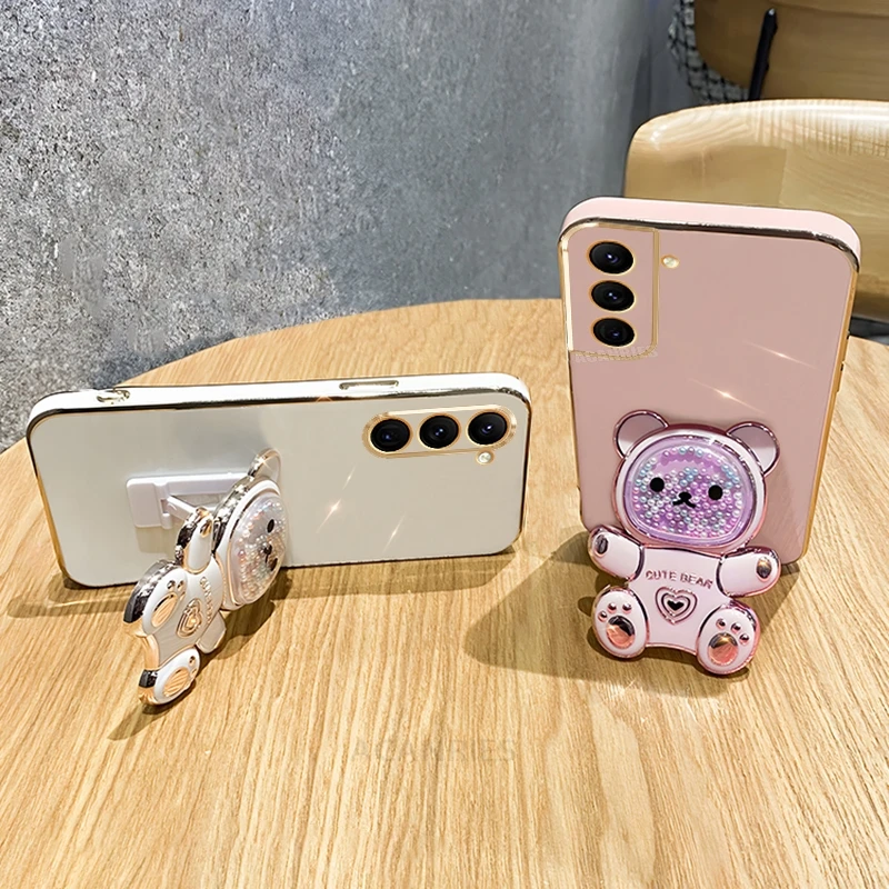 S 24 22 23 25 funda chapada con soporte de oso de arenas movedizas para Samsung Galaxy S21 S20 S22 S23 S24 Fe S25 Plus funda de soporte de silicona Ultra