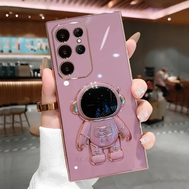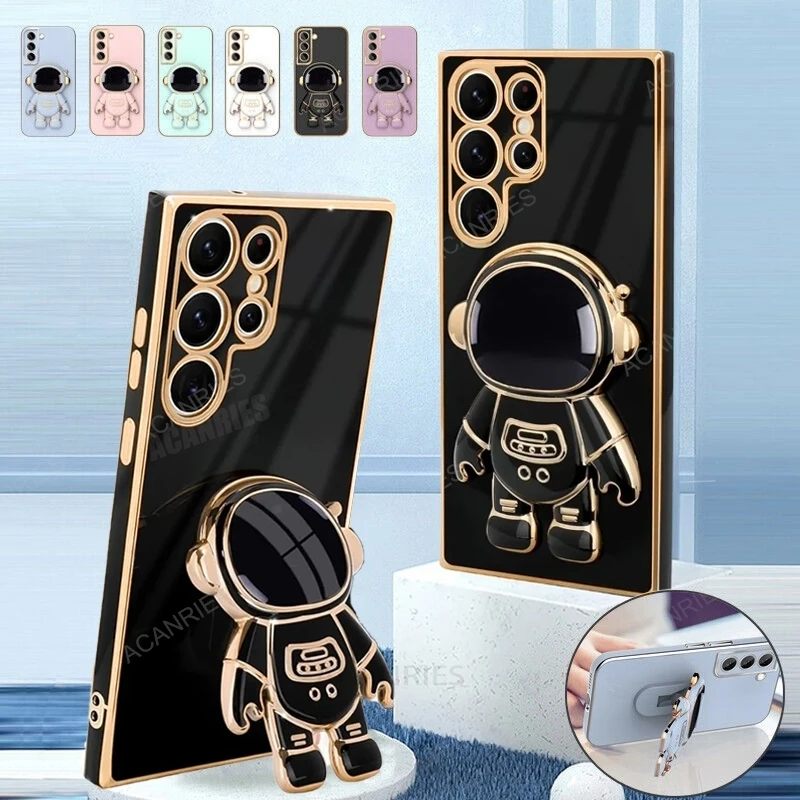 S 23 24 soporte de astronauta funda de lujo para Samsung Galaxy S21 S23 S20 Fe S22 S24 Plus funda de soporte de silicona Ultra Note 20