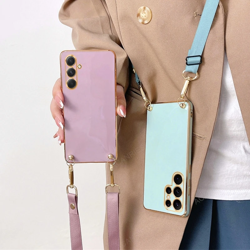 S 25 25plus Crossbody Lanyard Plating Case For Samsung Galaxy S25 Plus Ultra 5G Cord Silicone Back Cover S25plus S25ultra 2025
