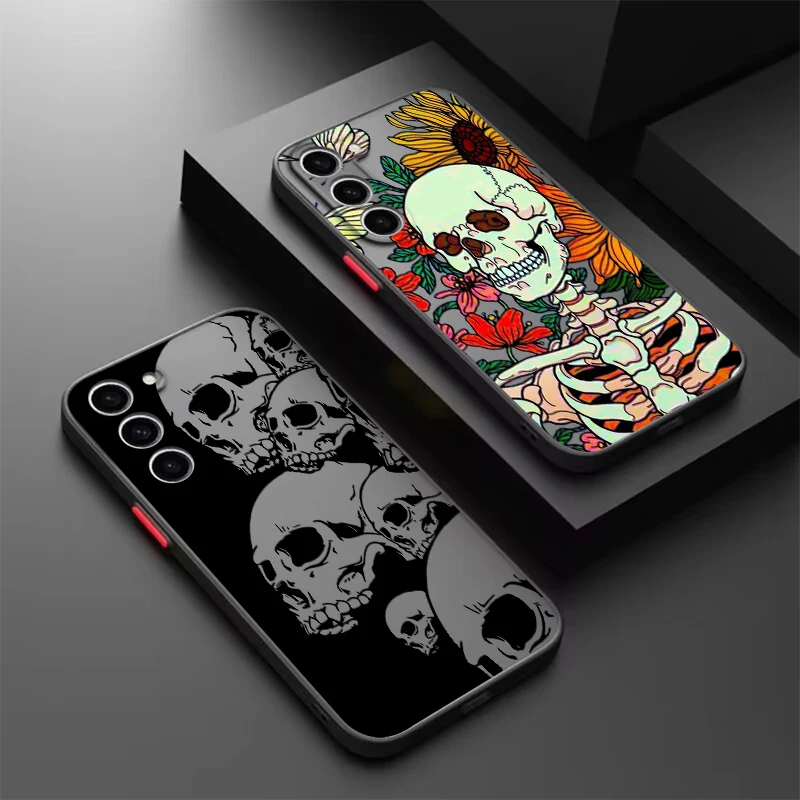 S-Skull Cool Art esmerilado translúcido para Samsung Note 20 A35 A03 A54 A31 A22 A34 A14 A24 A04 A55 5G funda de teléfono suave