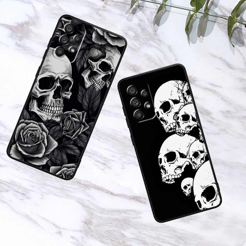 Comprar S-skull Cool Fashion Art para Samsung, Funda negra para teléfono, A53, A52, A33, A32, A51, A71, A21S, A13, A73, A55, A22, A23, A35, A72, A54, A12, 5G