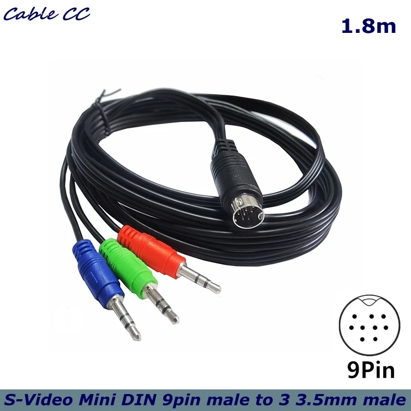 Cable de conexión Mini DIN 9P MINI DIN 9pi a 3 * DC3.5mm cable de audio rojo verde azul Mini DIN longitud 1,8 metros