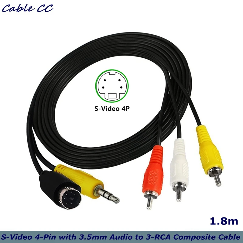 Comprar S-video Cable compuesto de Audio de 3,5mm a 3 RCA de PC a TV ,Video y Audio de 3,5mm a Video compuesto y Audio RCA L/R de 1,8 m