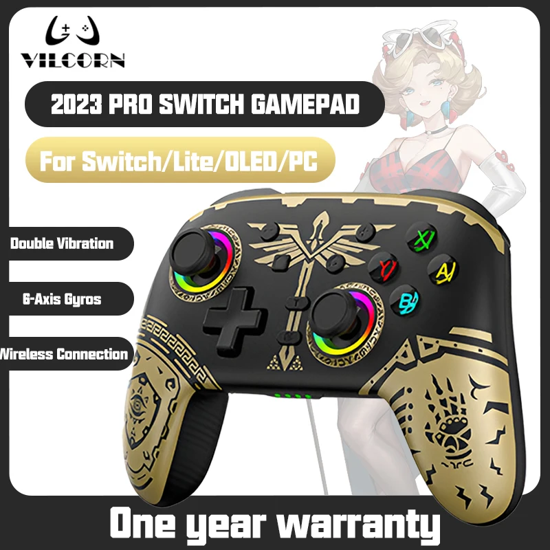 Comprar S08 Switch PRO inalámbrico Bluetooth Gamepad Blackgold vibración somatosensorial juego simulador de despertador con un solo clic