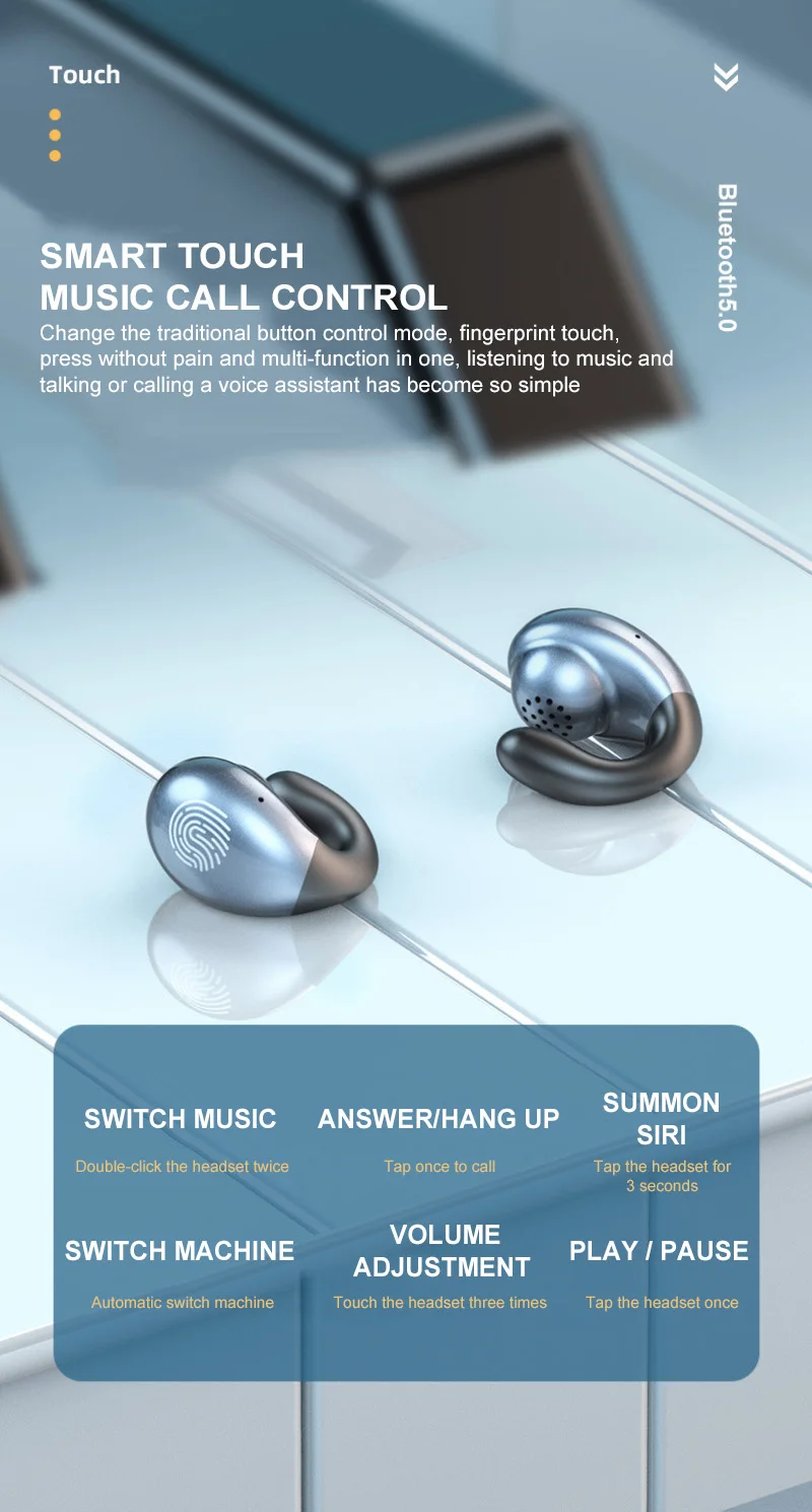 Comprar S19 conducción ósea TWS auriculares Control táctil bajo HiFi Bluetooth auriculares deporte juegos música en la oreja-Chip gancho pendiente auriculares