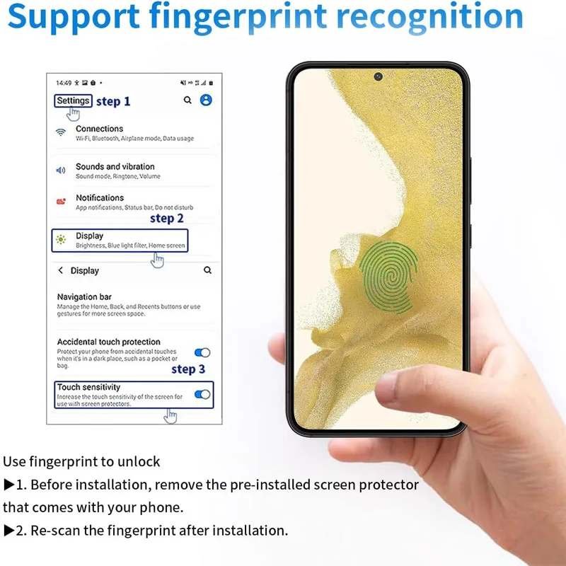 Variante: Color:For Samsung S23 Bundle:Fingerprint Glass Material:3Pcs Protector