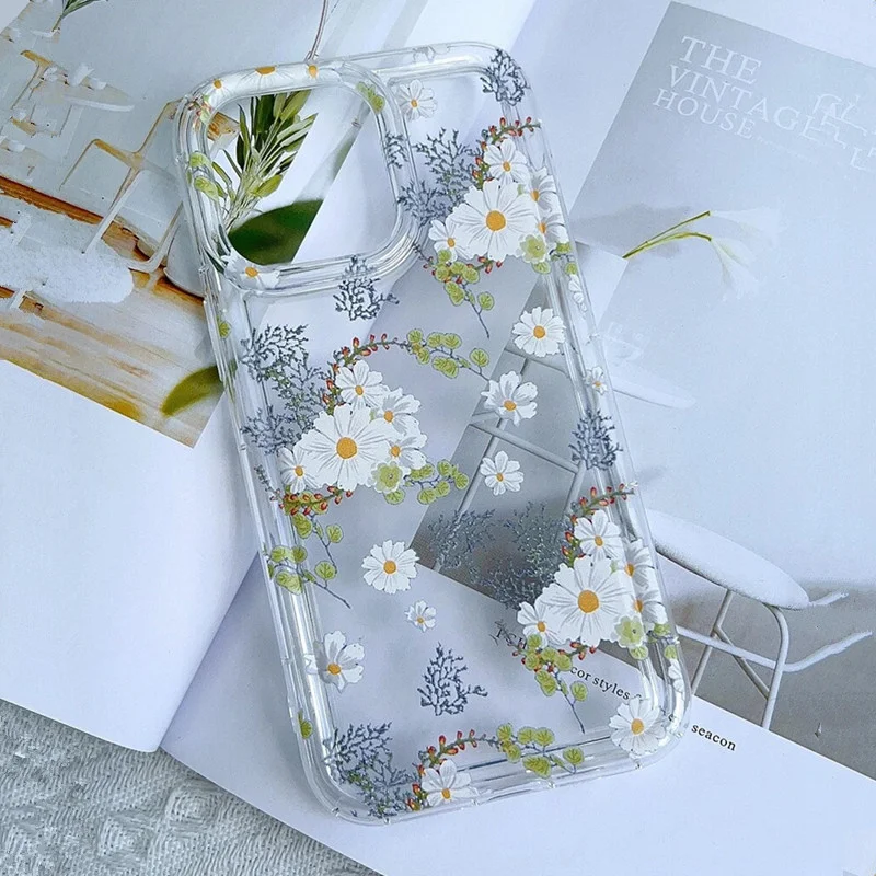 La compre porque quería una funda transparente y la verdad que es monisima, la voy a llevar un montón y además las flores quedan monisimas