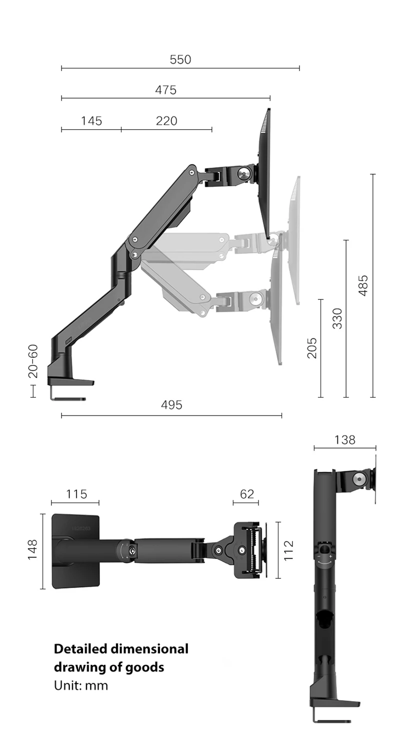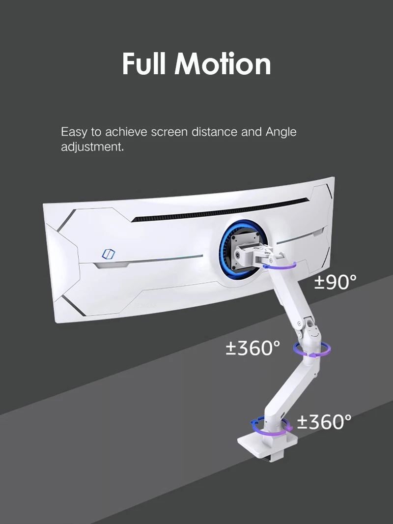 Comprar S500 Brazo de resorte de Gas de aluminio , soporte de Monitor de pantalla de arco curvo de 34-49 pulgadas, Samsung Odyssey Neo G9/G7, soporte de pantalla grande, carga de 20kg