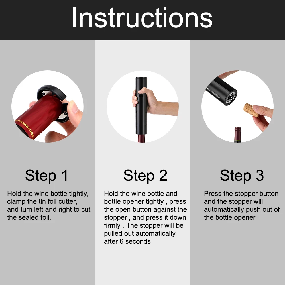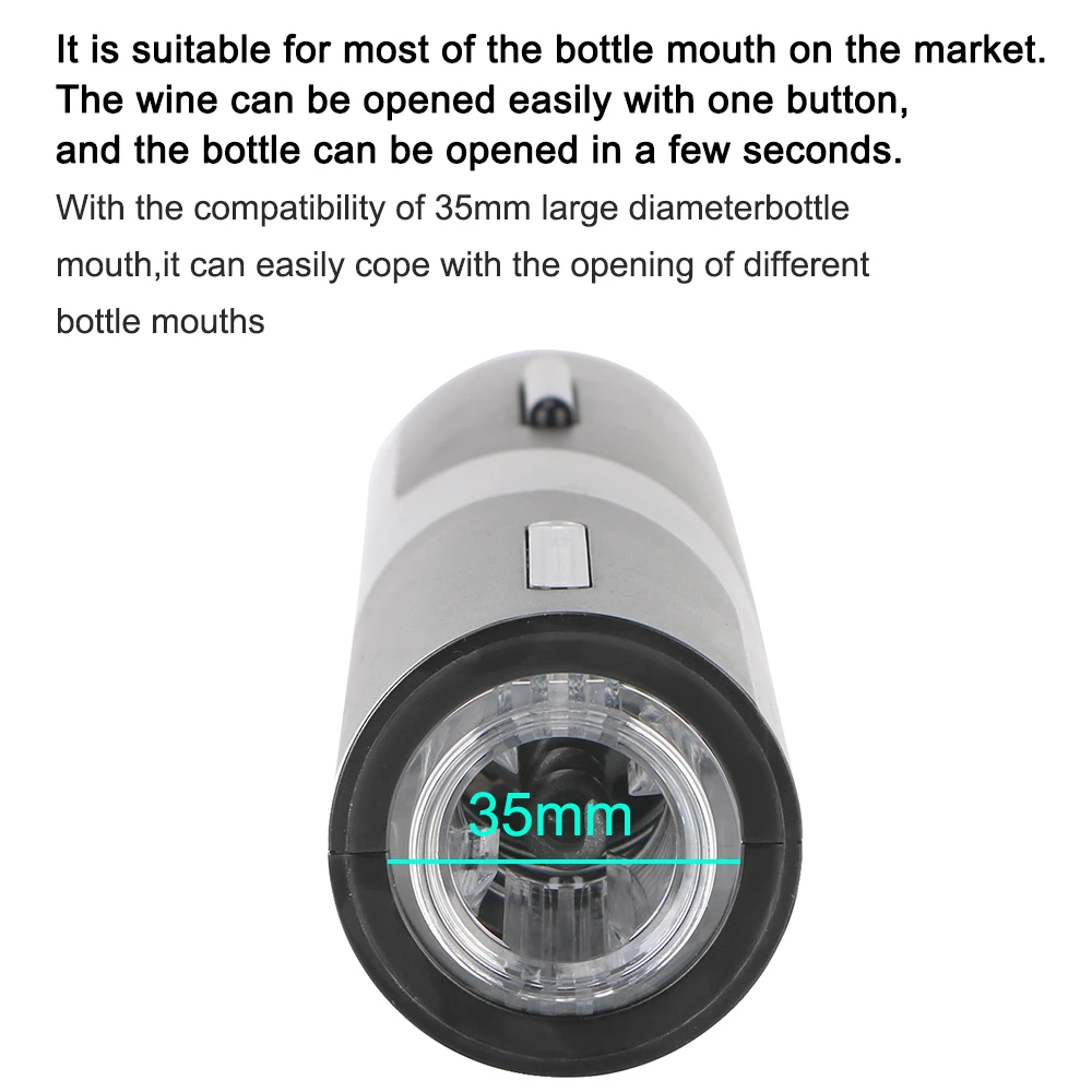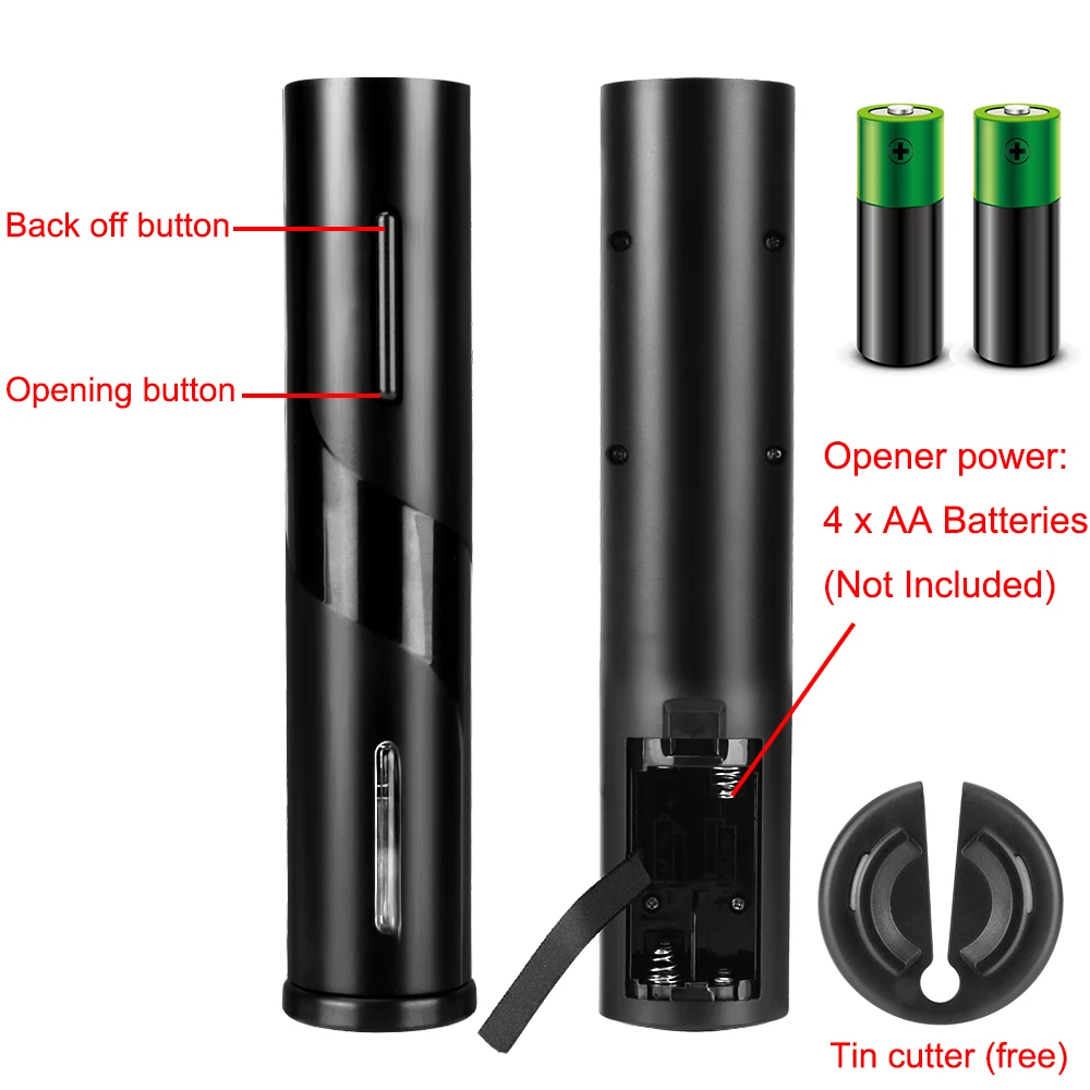 [Potente y duradero]:El abridor de vino eléctrico tiene una función de extracción de corcho potente y rápida que puede abrir hasta 100 botellas de vino a la vez. Se requieren 4 pilas AA (no incluidas).