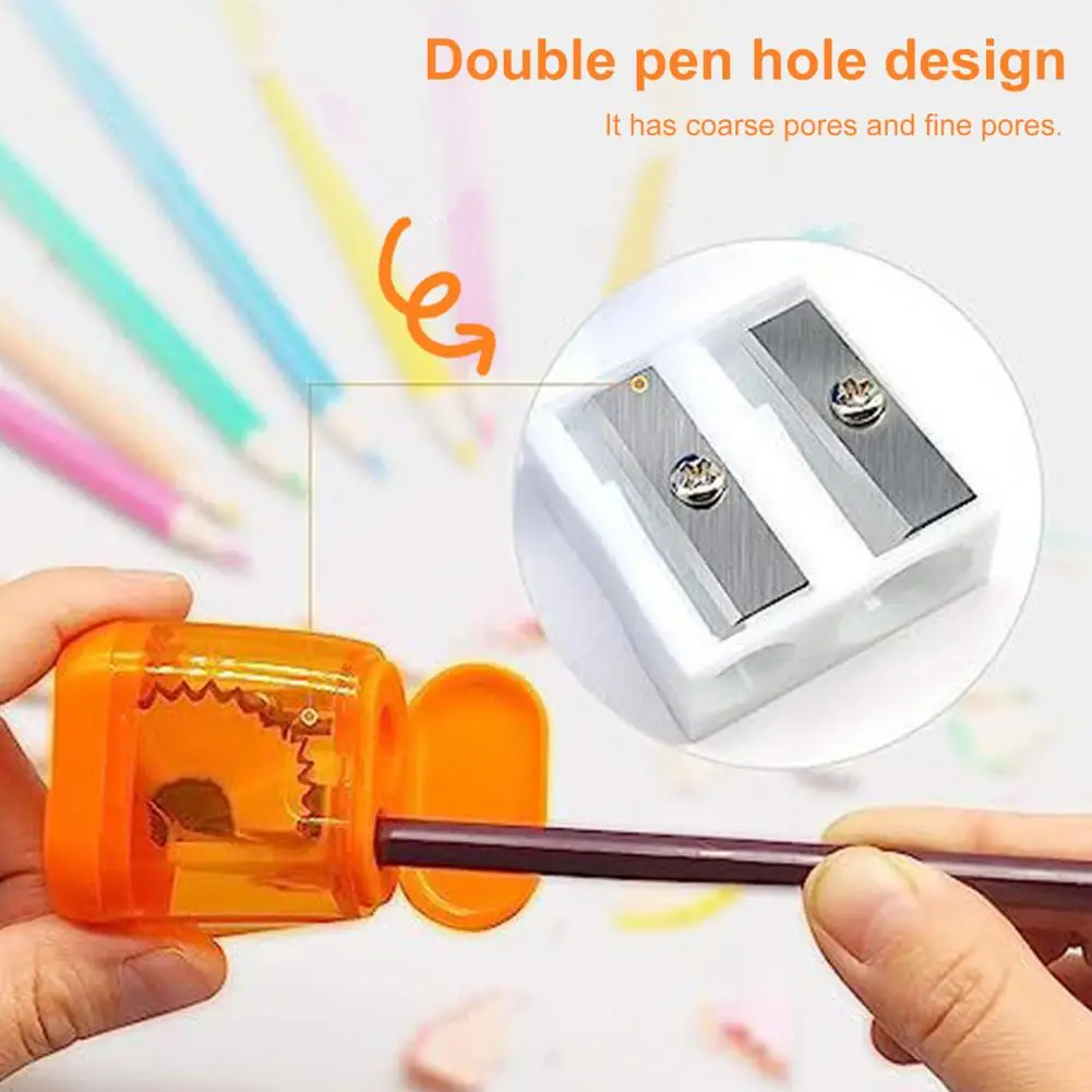 Sacapuntas de alta calidad Sacapuntas de lápiz de doble orificio de 12 Diseño lindo Cuchillas de acero al carbono Tapa a prueba de salpicaduras para niños