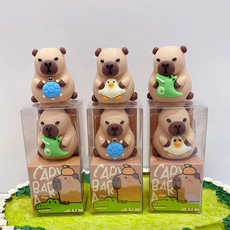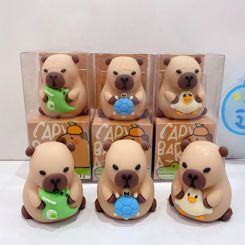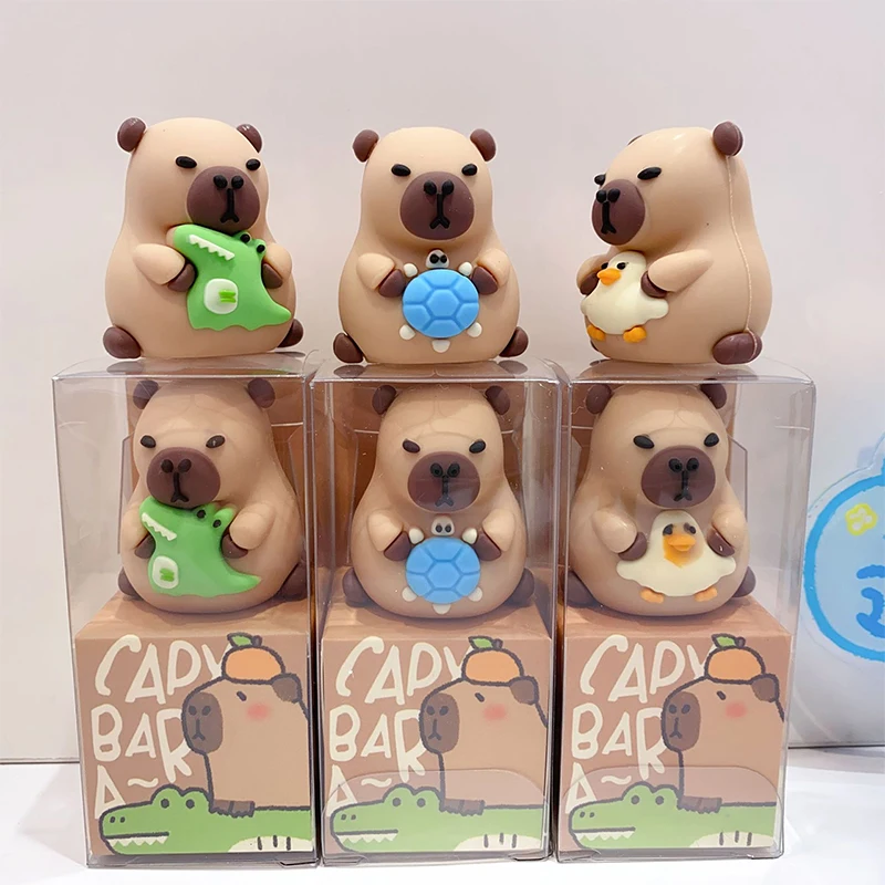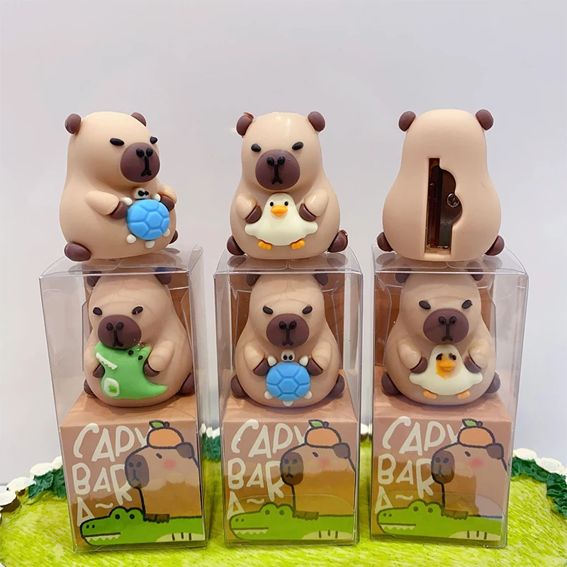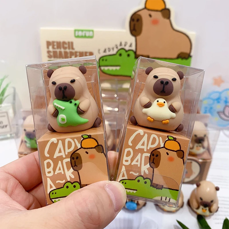 Comprar Sacapuntas creativo de capibara con forma de dibujos animados en 3D, bonito navaja para niños, baratijas de plástico para escritorio, papelería escolar, regalo aleatorio, 1 ud.
