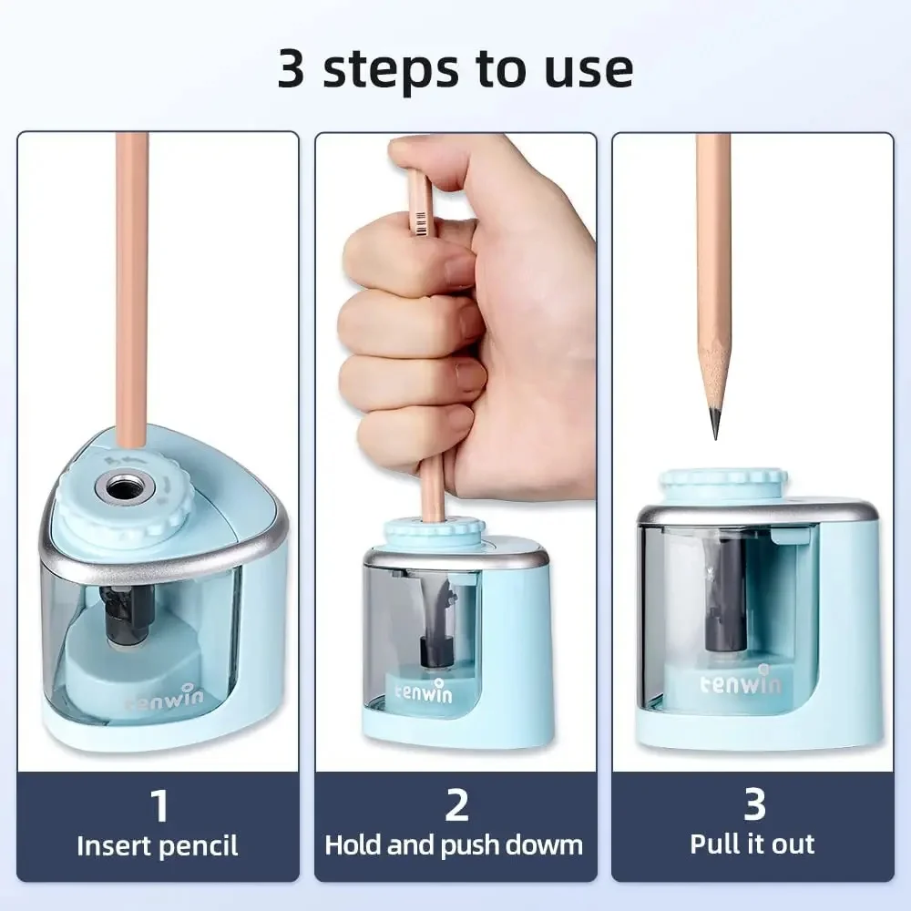 Comprar Sacapuntas eléctrico automático para estudiantes, sacapuntas de hoja de acero helicoidal para artistas, lápices de colores para niños y adultos