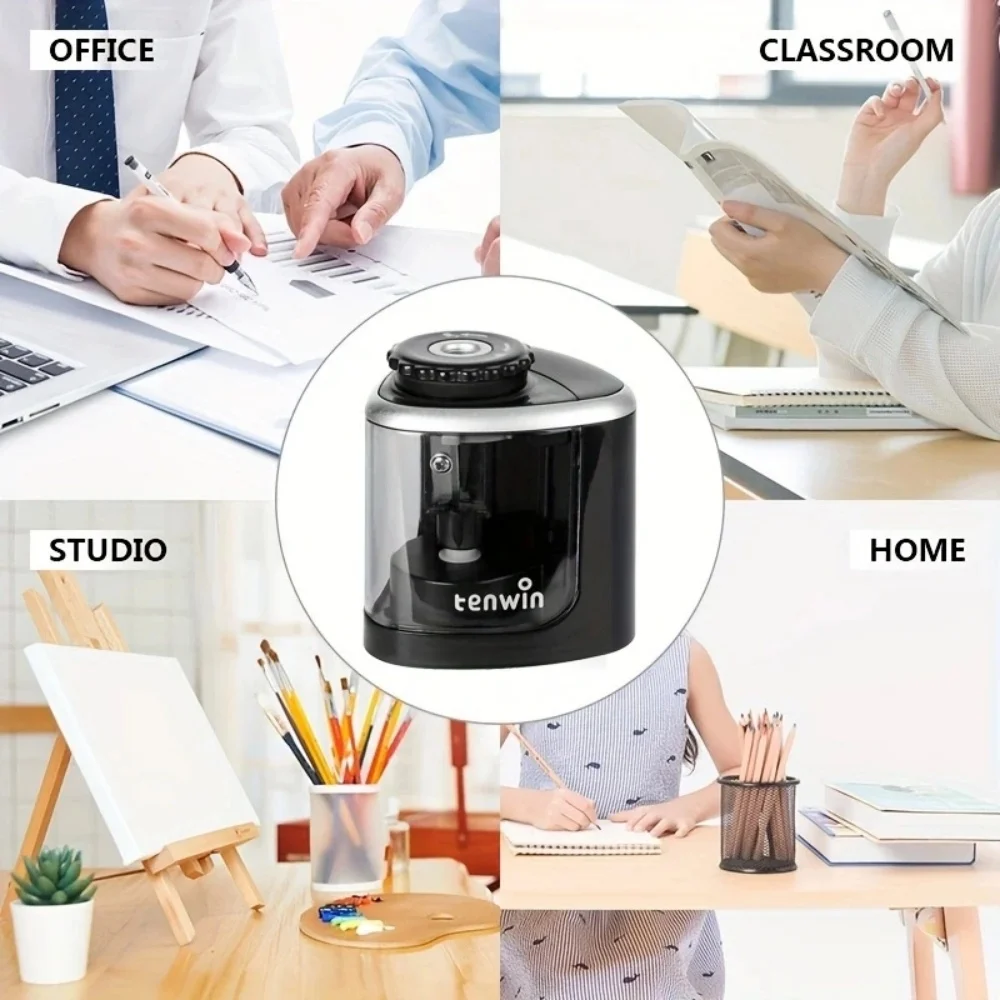 3. Lápices estándar de afilado rápido de 6-8 mm: el sacapuntas eléctrico puede afilar rápidamente varios lápices de 6 a 8 mm (excepto lápices blandos). Puede moler No. 2 lápices de colores, incluso lápices de carbón vegetal.