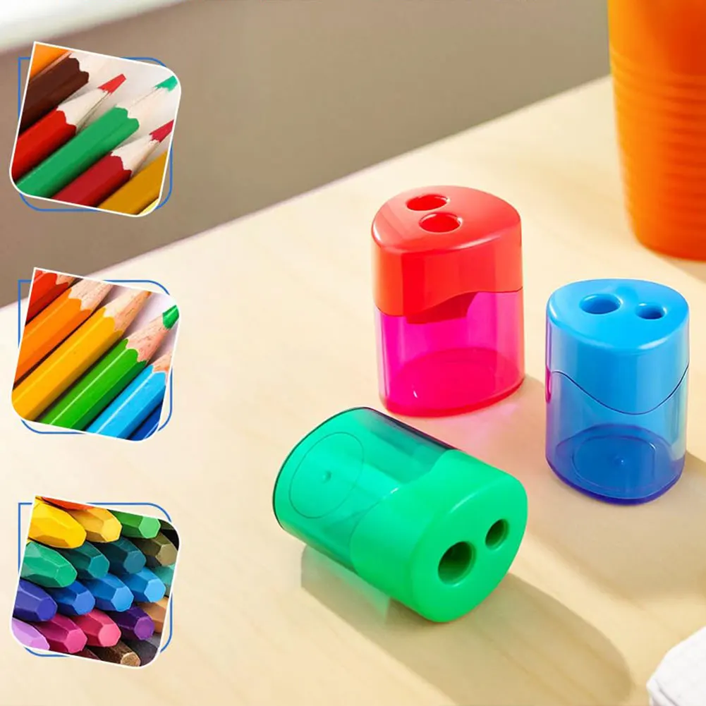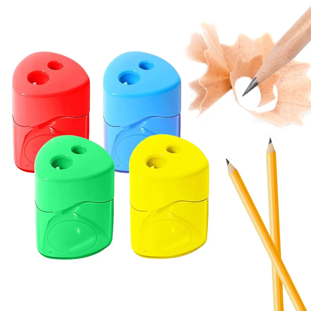 Sacapuntas portátil de 4 Uds., sacapuntas de mano colorido de doble agujero para niños, adultos, estudiantes, clase escolar, oficina en casa