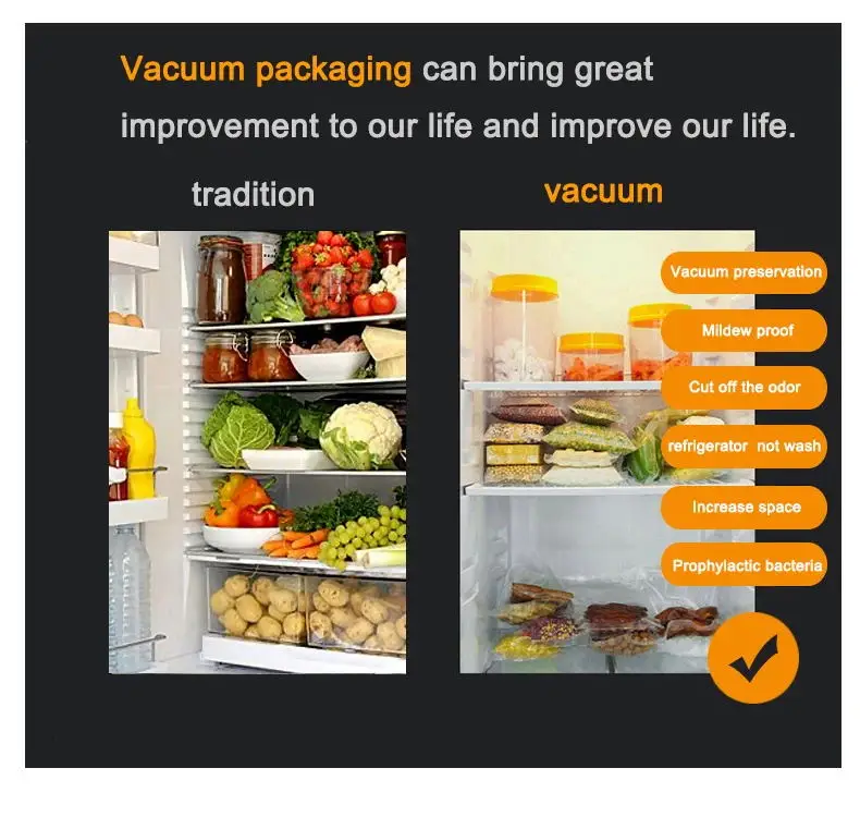 ✅【Longitud personalizada】: sin diseño precortado, creando su propia longitud de bolsa. Menos comida desperdiciada, mucho dinero ahorrado. Sella los rollos de bolsas de comida. 3-6 veces más vida útil de los alimentos, mantiene la frescura, el sabor y la nutrición en el interior.
