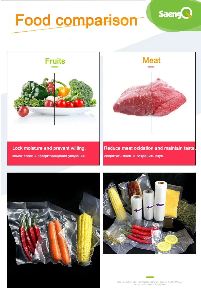 Comprar SaengQ-Bolsas para sellador al vacío de alimentos frescos, bolsas para conservar alimentos al vacío, rollos/lote de bolsas para envasado al vacío 12, 15, 20, 25, 30cm x 500cm