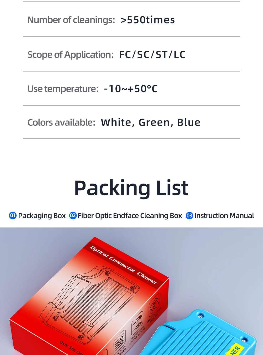SAIVXIAN A-550 caja de limpieza facial de extremo de fibra limpiador de coleta Cassette herramienta de limpieza de fibra Ftth herramientas de limpieza de fibra óptica SC/ST/FC