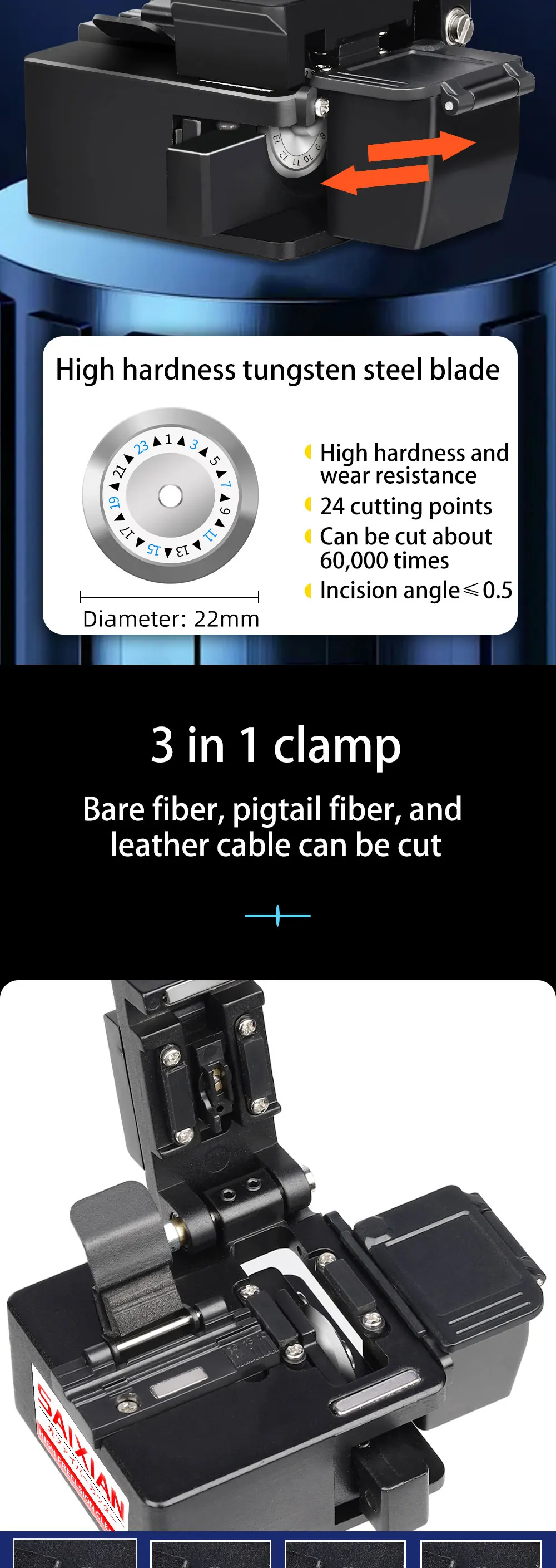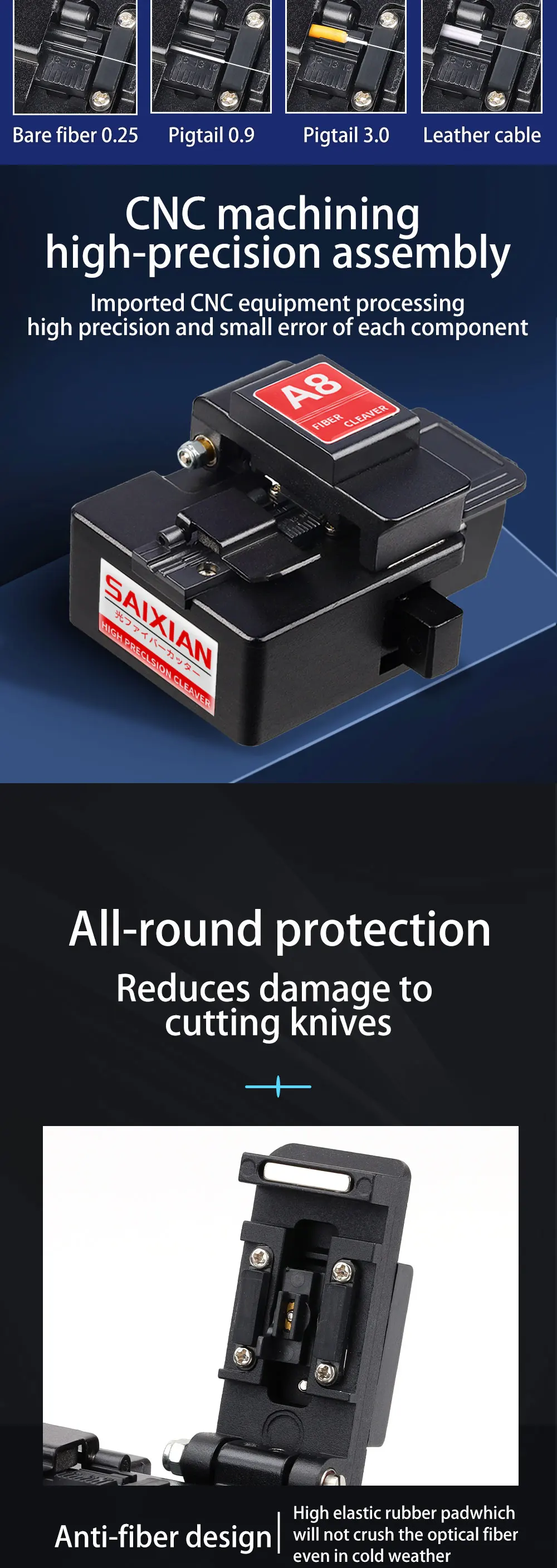Comprar SAIVXIAN-cuchilla de fibra de alta precisión A8, 24 hojas de superficie FTTH, cuchillo de corte de Cable de fibra óptica, herramientas con caja de fibra de desecho