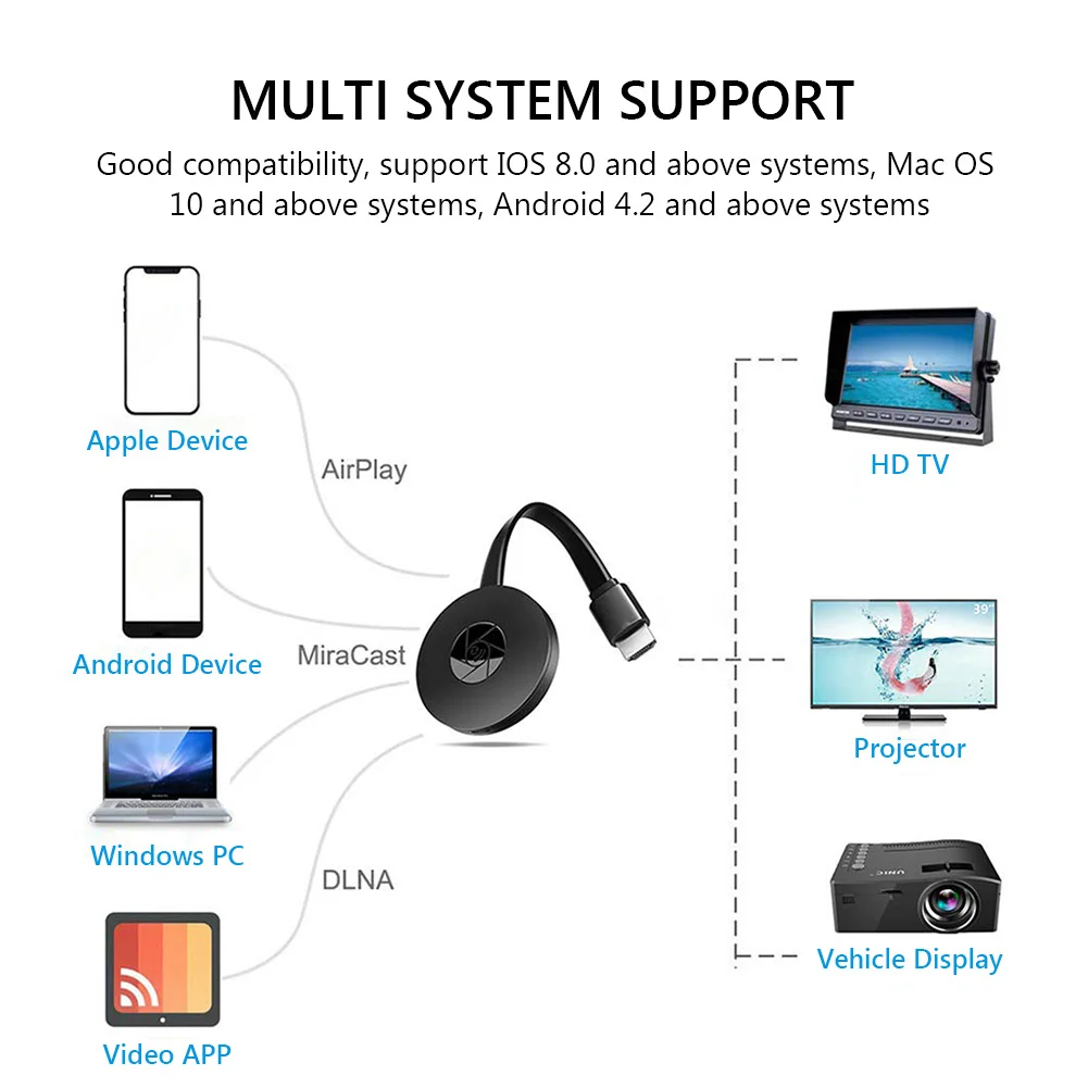 G2 Miracast TV Dongle Wifi Wireless TV Stick Compatible con Supoort-Adaptador de pantalla de espejo HD de 1080P para IOS Andorid