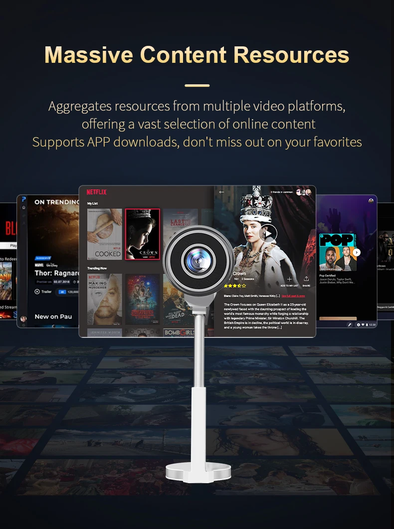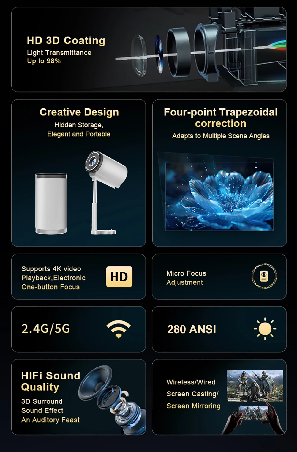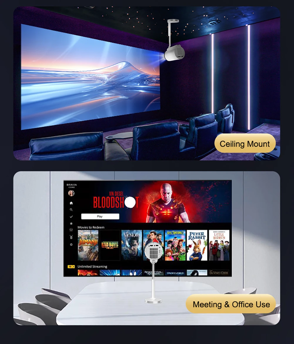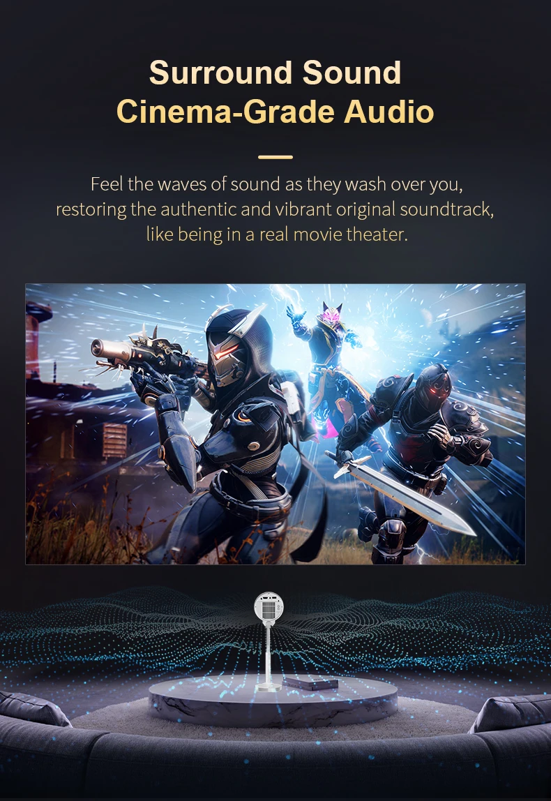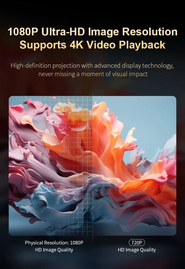 【Resolución nativa de 1080P Full HD] El proyector puede ofrecer películas en HD con una resolución nativa de 1920*1080, que admite 4K.Equipado con un brillo excelente y una alta relación de contraste dinámico de 10000:1, el proyector HD proporciona imágenes más nítidas, brillantes y ricas.