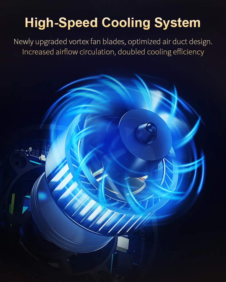 Sistema de refrigeración de alta velocidad con turbinas duales delanteras y traseras