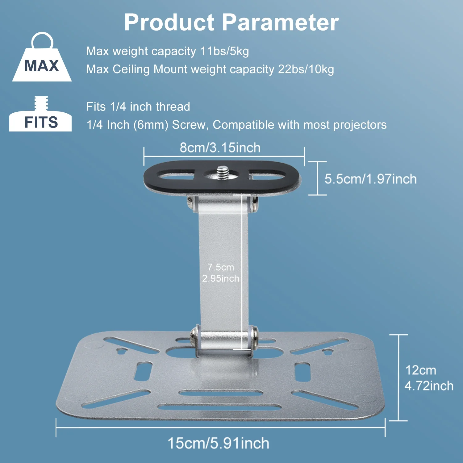 El soporte se puede ajustar en múltiples ángulos mediante un diseño de junta universal y de doble eje.Fácil de cambiar la posición del proyector para obtener un mejor punto de vista.